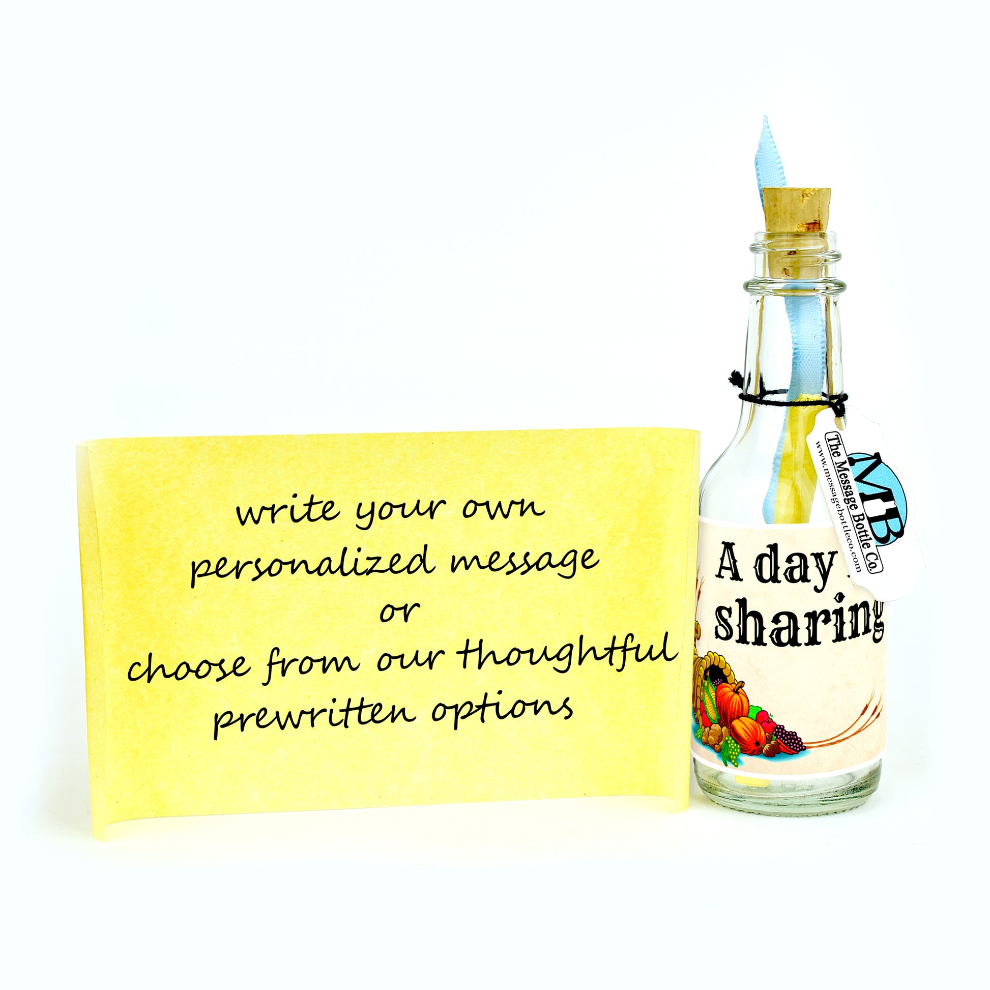 Celebrate Thanksgiving with our charming Message Bottle featuring the heartfelt sentiment "A day for sharing." This label captures the holiday spirit of coming together with loved ones.