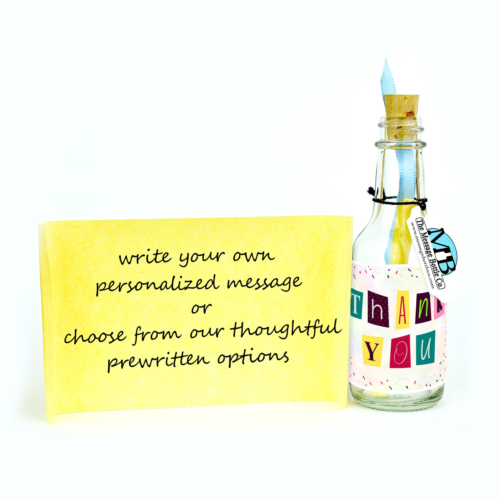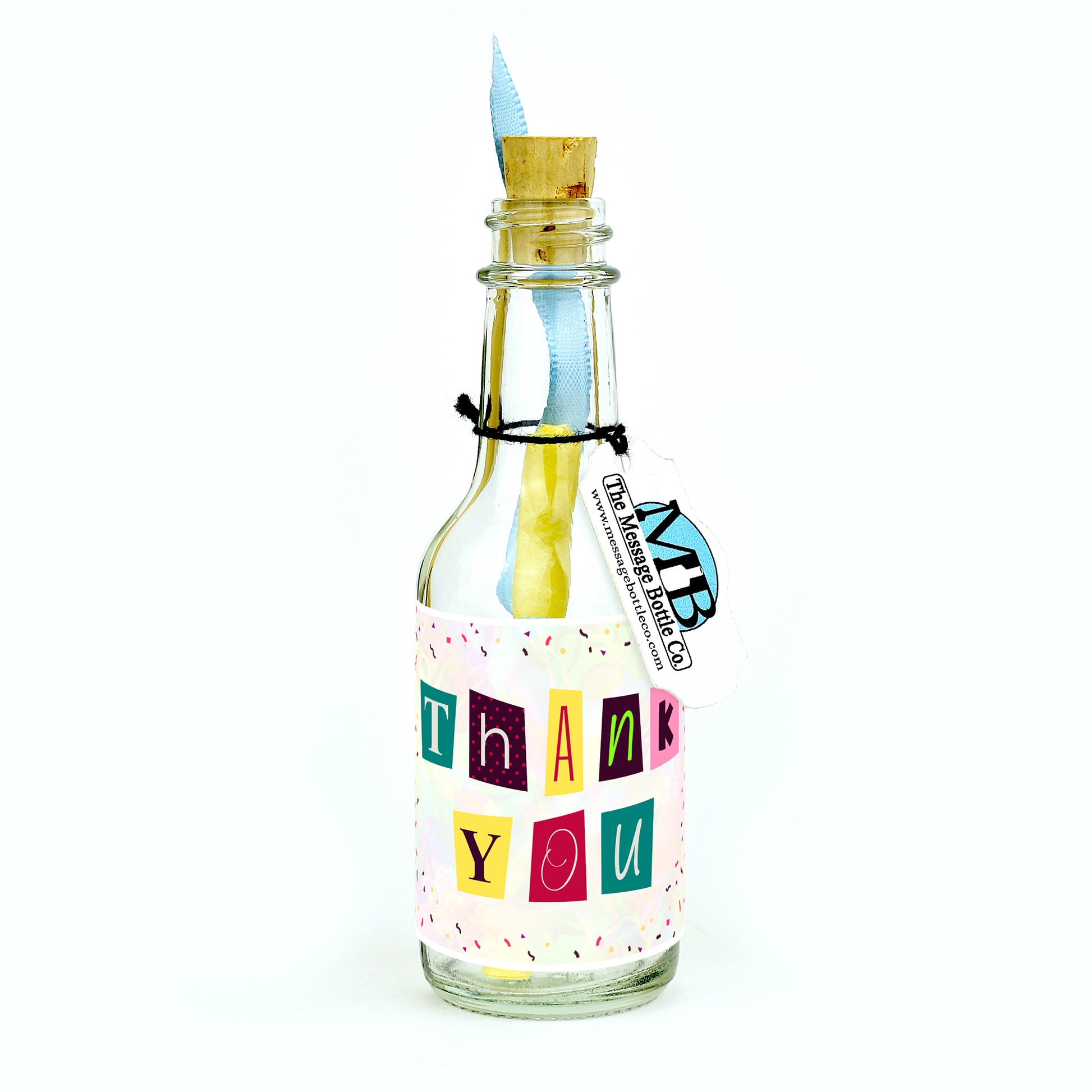 Ideal for acknowledging acts of kindness or celebrating special moments, this Message Bottle brings a vibrant and playful energy to your gratitude. The mix of magazine letters and colorful confetti makes your appreciation both memorable and delightful.