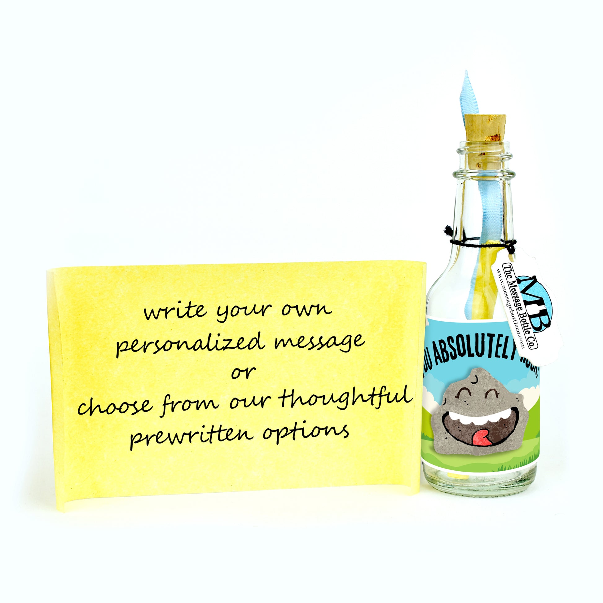 Celebrate their achievements with a burst of cheer with our "You Absolutely Rock" Message Bottle! Featuring a big, smiling rock beaming with pride, this design is all about giving a fun and enthusiastic shoutout to someone who truly deserves it. The bold text, "You Absolutely Rock," drives the message home with playful confidence.