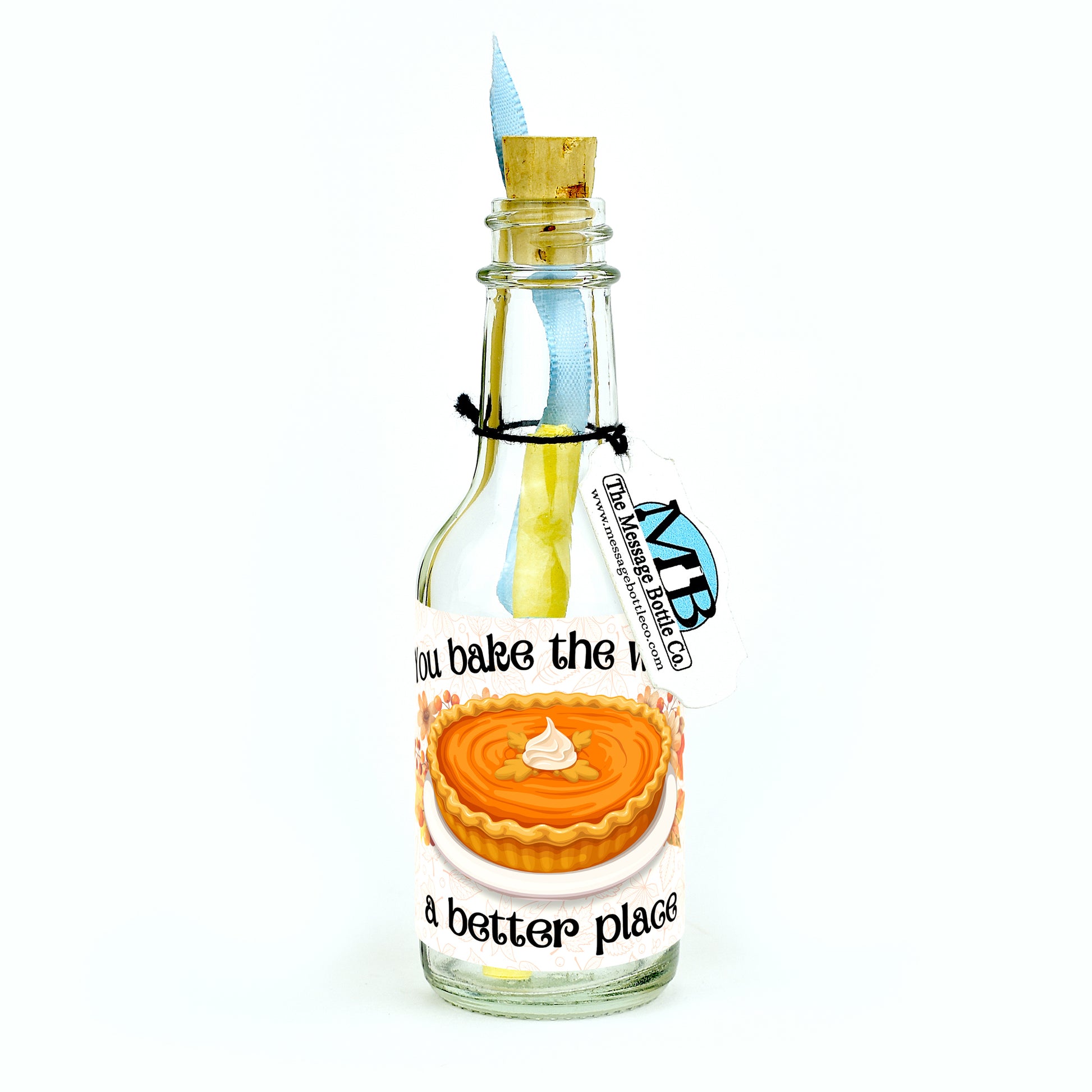 Sweet as pumpkin pie and just as heartwarming, this Message Bottle features a classic pumpkin pie on a cozy autumn background, a fitting tribute to those who make everything better. The thoughtful “You Bake the World Better” Message Bottle is a perfect way to express your gratitude to someone who fills life with kindness and warmth.