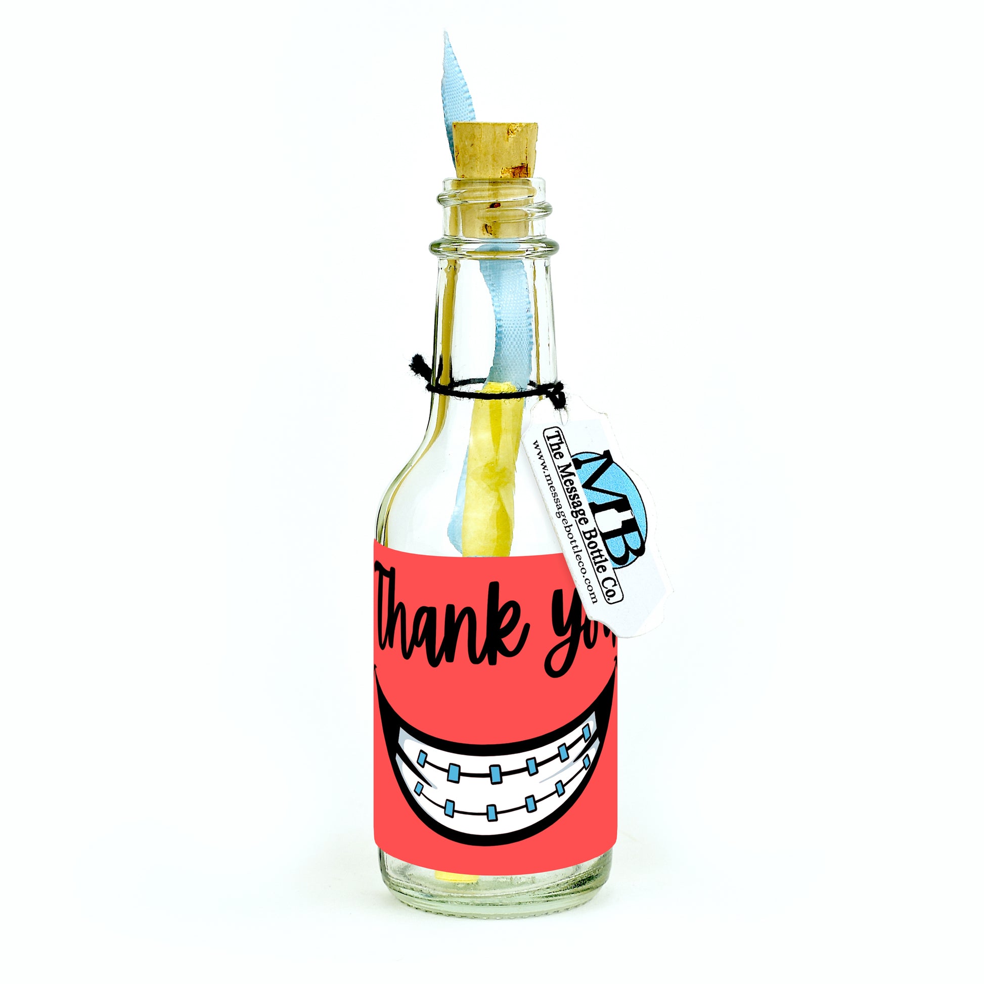 A bright and cheerful celebration of appreciation, the “Brace for Thanks” Message Bottle features a big, ginning cartoon smile with braces on a vibrant red background. The fun, energetic design captures the joy of dentistry while sending a heartfelt “thank you” with personality and charm.