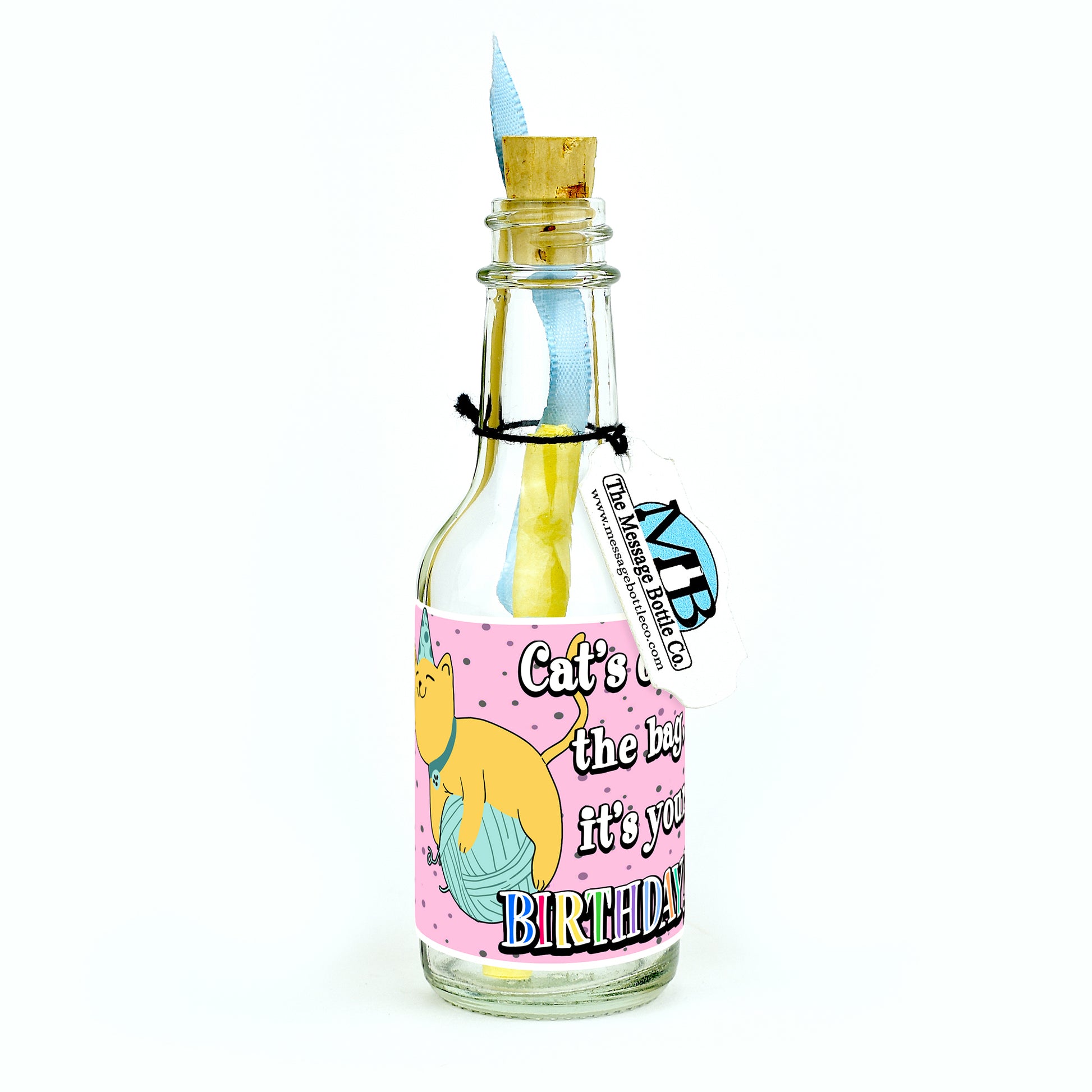 Order now to whisk them away on a delightful birthday adventure with our charming 'Cats outa the Bag' Message Bottle. Spread joy and cheer, like a playful kitty on a sunny afternoon.