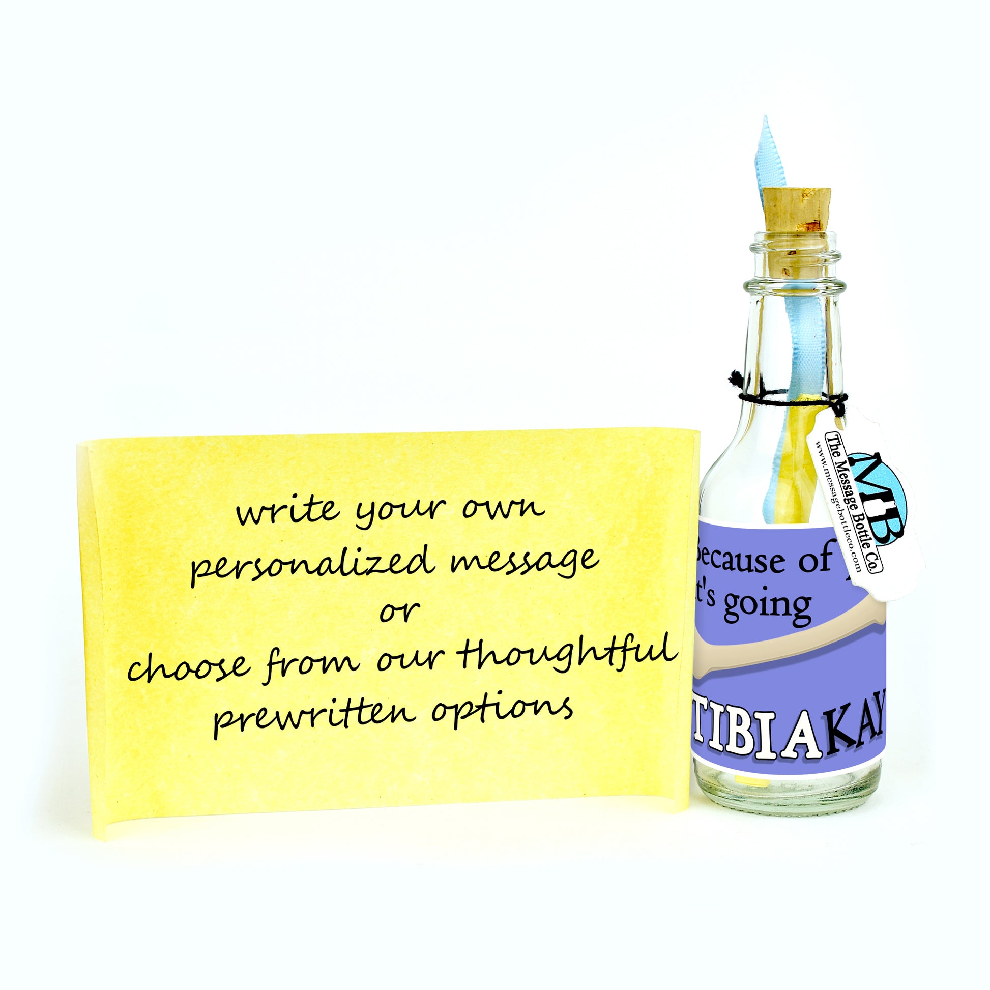 The "Goin TIBIA-KAY" Message Bottle is a fun way to show appreciation for the nurses who always keep things on the mend. Featuring an illustration of a bone and the playful phrase "Because of you, it's going TIBIAKAY," this design cleverly blends medical humor with heartfelt thanks. It’s a lighthearted nod to the critical care and support nurses provide when things get tough.