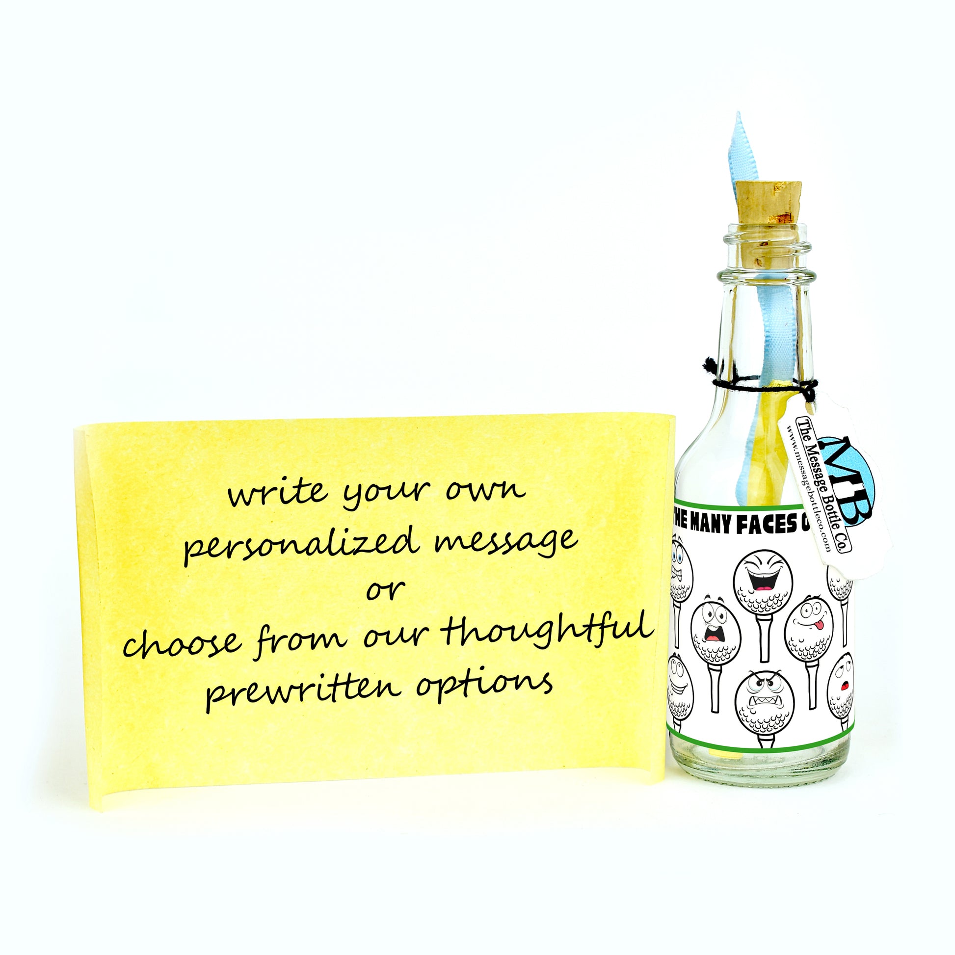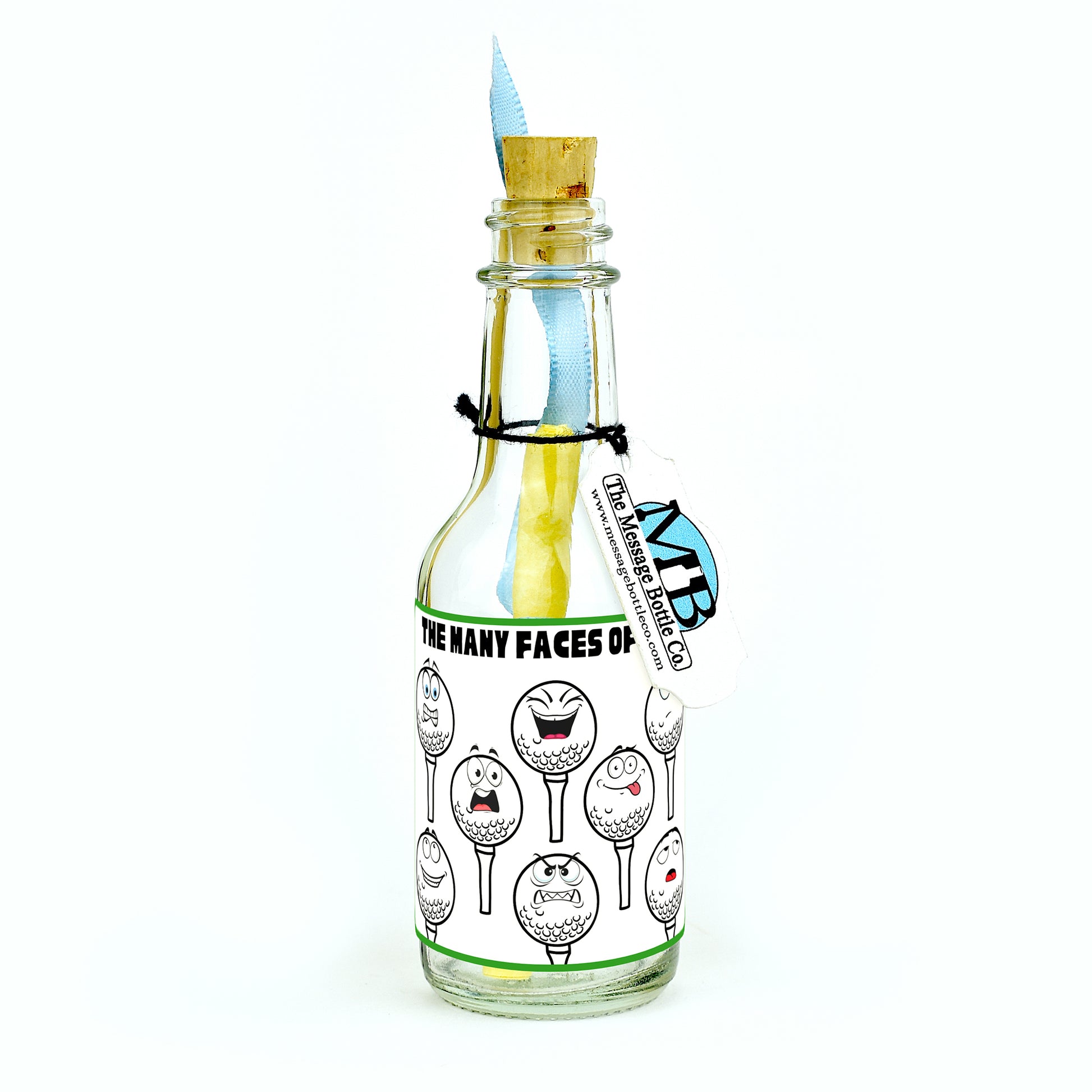 Capture the rollercoaster of emotions that every golfer knows all too well with our "Golf Buddies" Message Bottle. This design features a series of golf balls, each sporting a different cartoon expression - elation, anger, embarrassment, and everything in between. It's a playful nod to the ups and downs of the game, all summed up with the perfect phrase: "The many faces of golf."