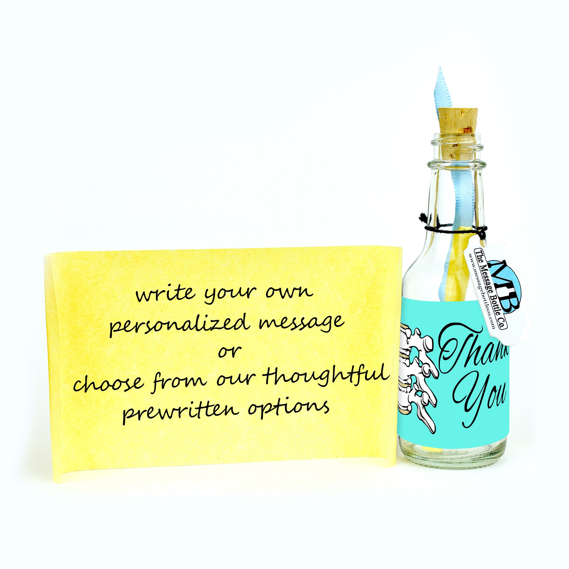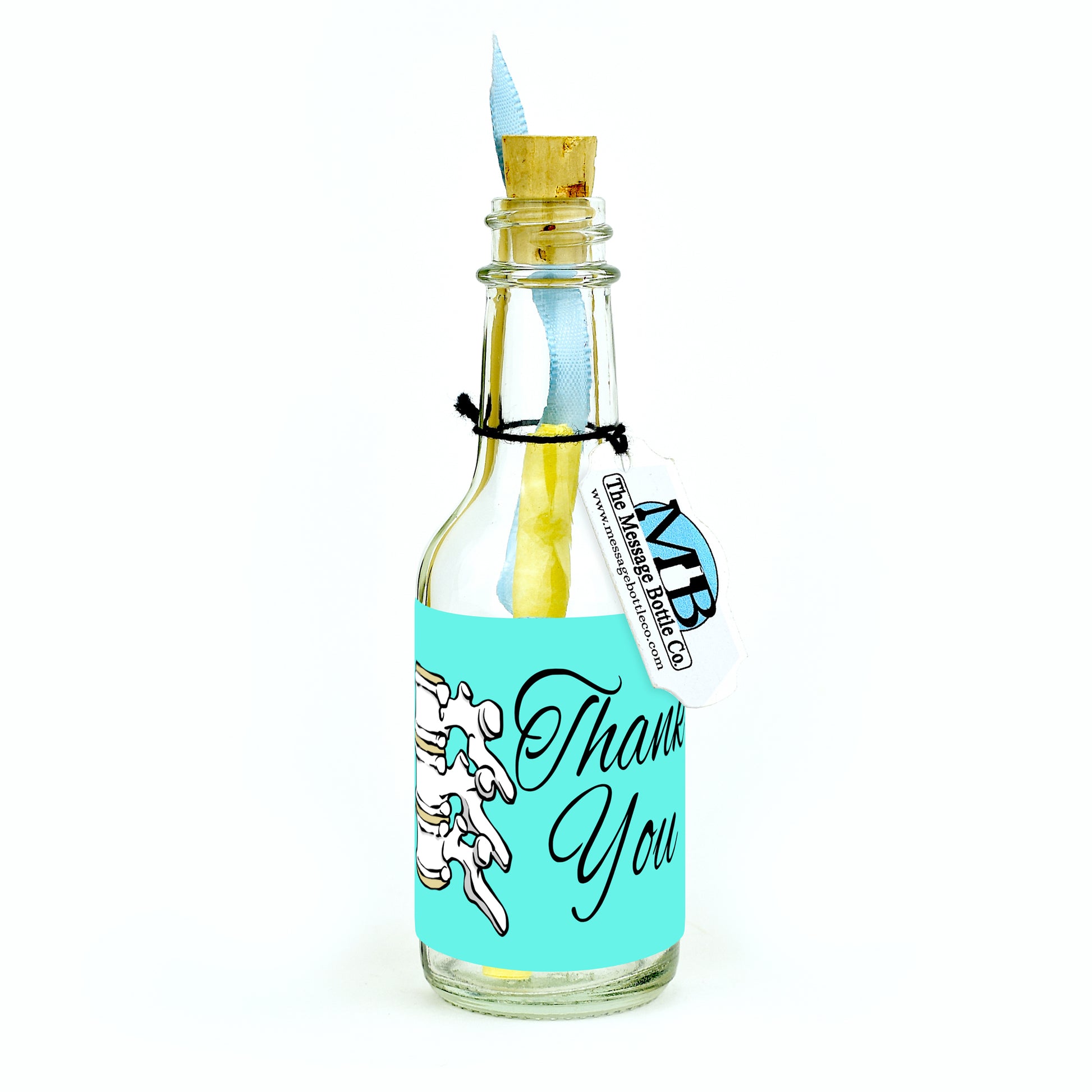 A graceful celebration of care and appreciation, the “Grateful Connection” Message Bottle features a beautifully illustrated pair of vertebrae set against a striking light cyan background. The decorative script of “Thank You” complements the artwork, creating a design that feels both elegant and full of heart - perfect for showing gratitude with style and sincerity.