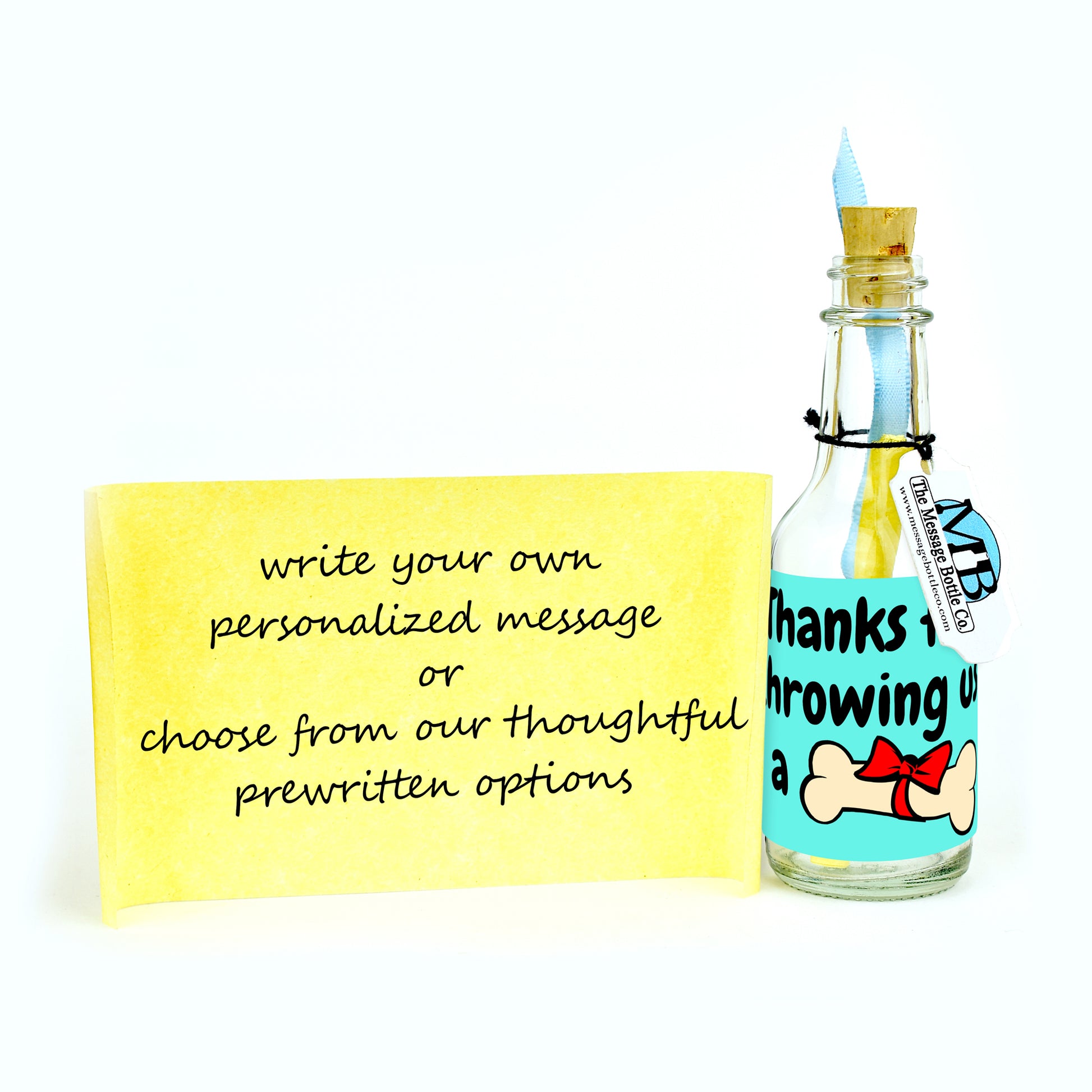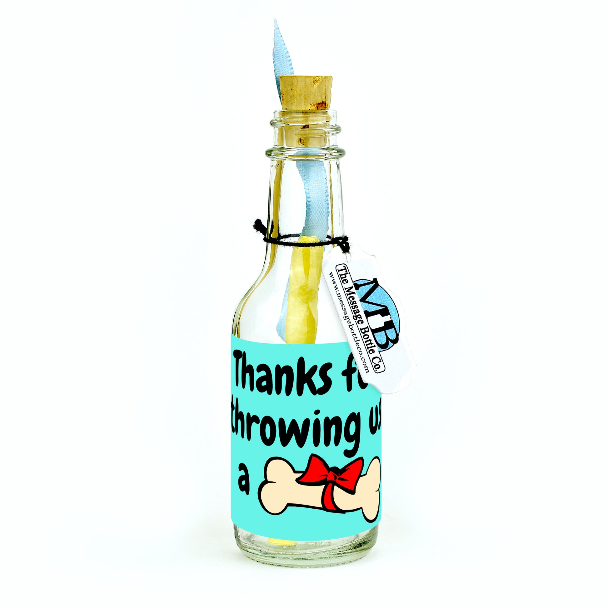 Playful and full of energy, the “Grateful To The Bone” Message Bottle captures gratitude in the most tail-wagging way. A cheerful dog bone tied with a bright red bow rests against a vibrant aqua background, radiating appreciation and charm that’s perfect for animal lovers and veterinary professionals alike.