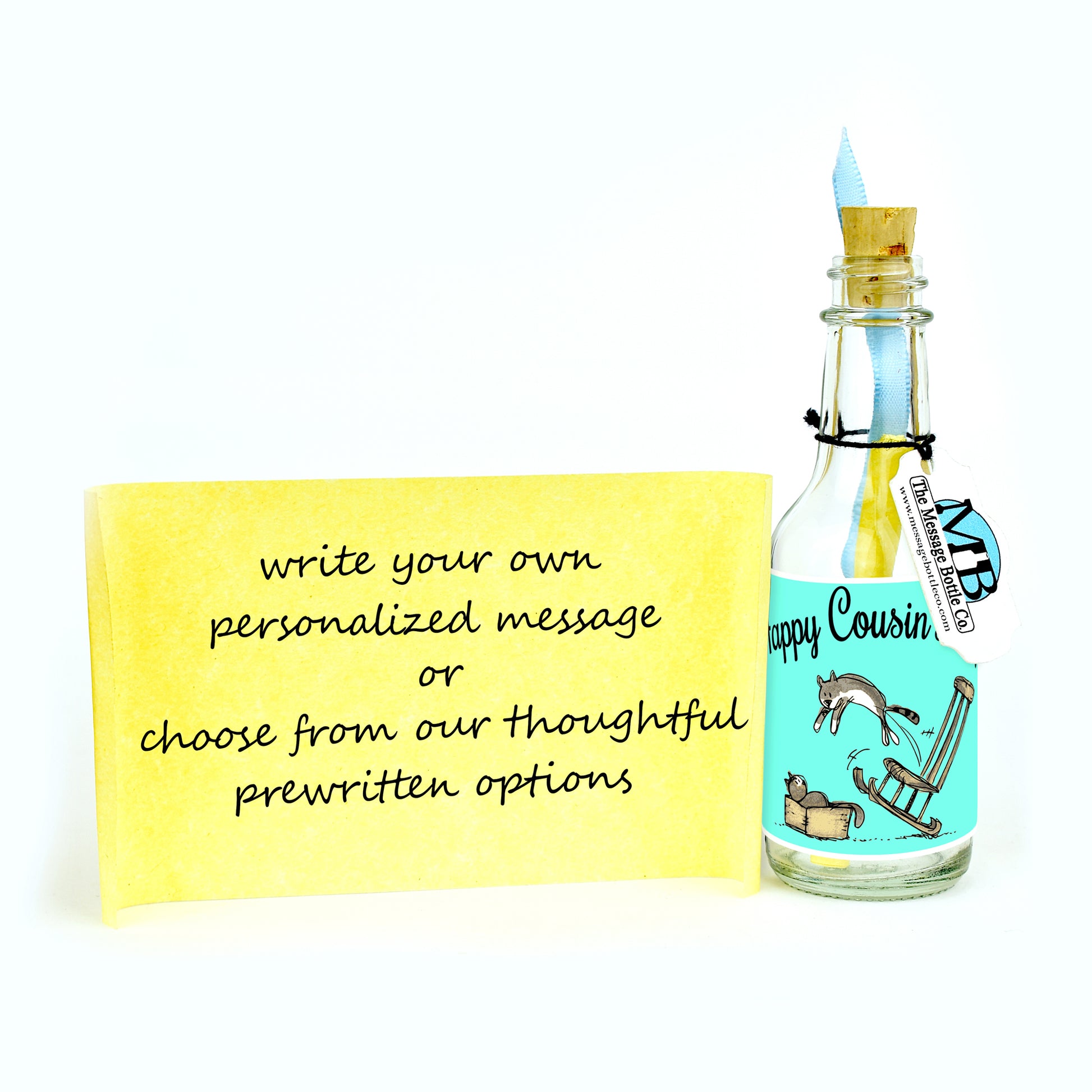 This label brings a smile and a touch of humor to the celebration. This Message Bottle becomes a cherished token of the shared laughter and moments with your cousin.