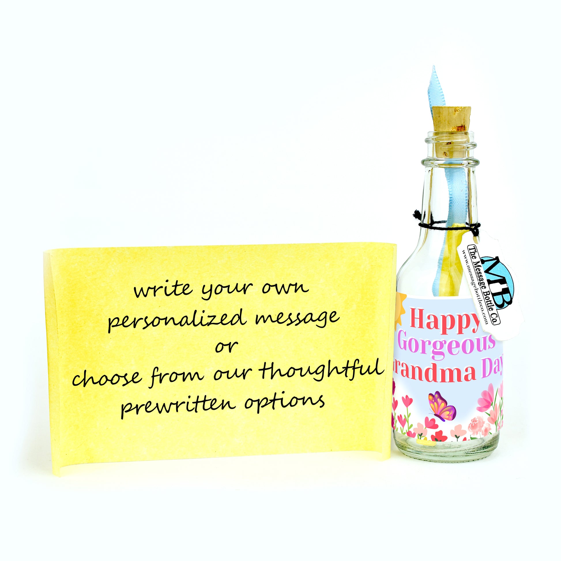 Celebrate Gorgeous Grandma Day with our elegantly designed Message Bottle. Adorned with a flowered frame, it gracefully states, "Happy Gorgeous Grandma Day." A heartfelt tribute to the beauty and warmth you bring.