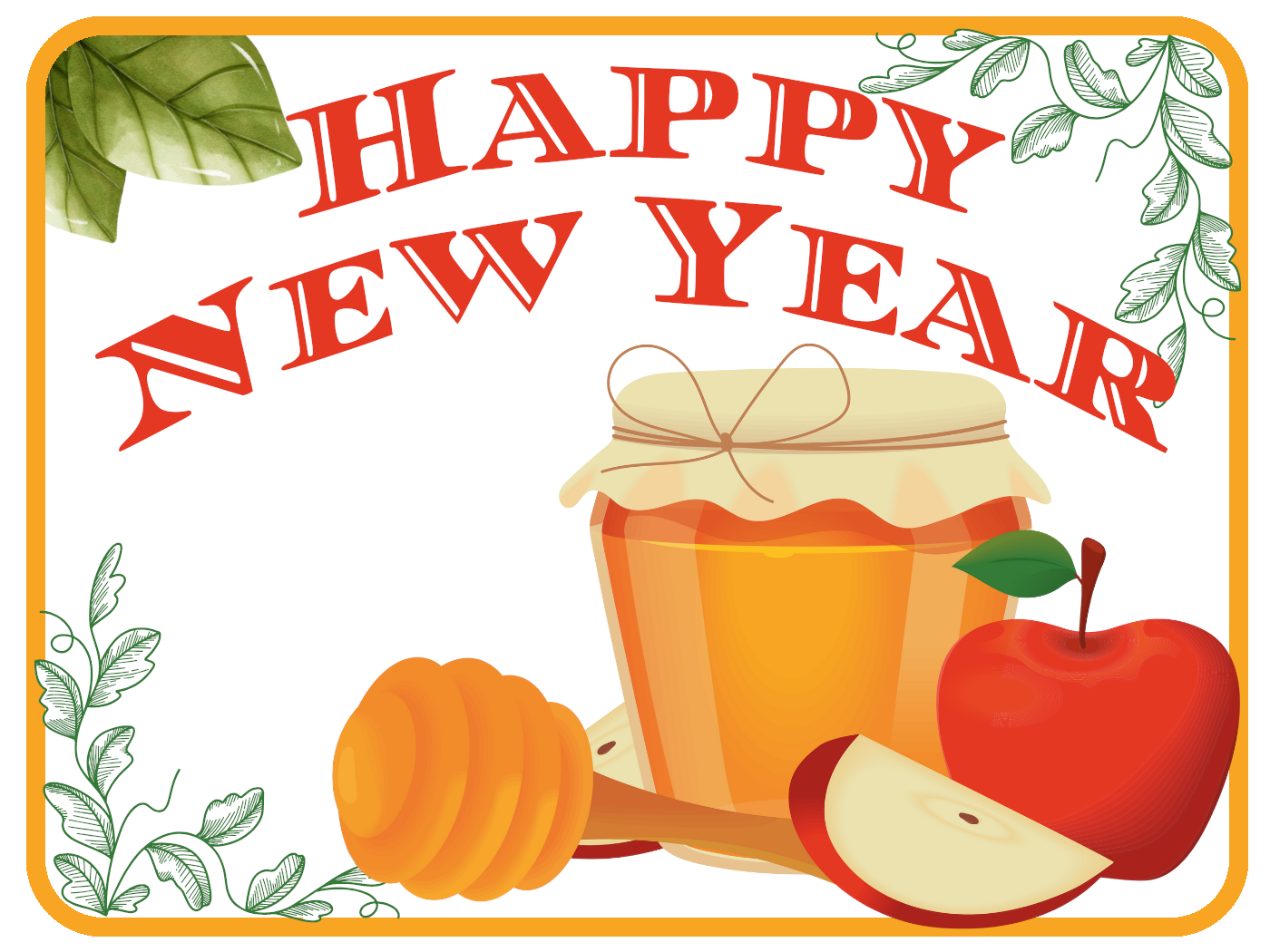 Celebrate Rosh Hashanah with a touch of tradition and sweetness using our "Honeyed Blessings" Message Bottle. This charming design features a cartoon jar of honey, a honey dipper, and a crisp apple, symbolizing the classic Rosh Hashanah traditions. The foliage filigrees add a decorative touch, complementing the festive message "Happy New Year."
