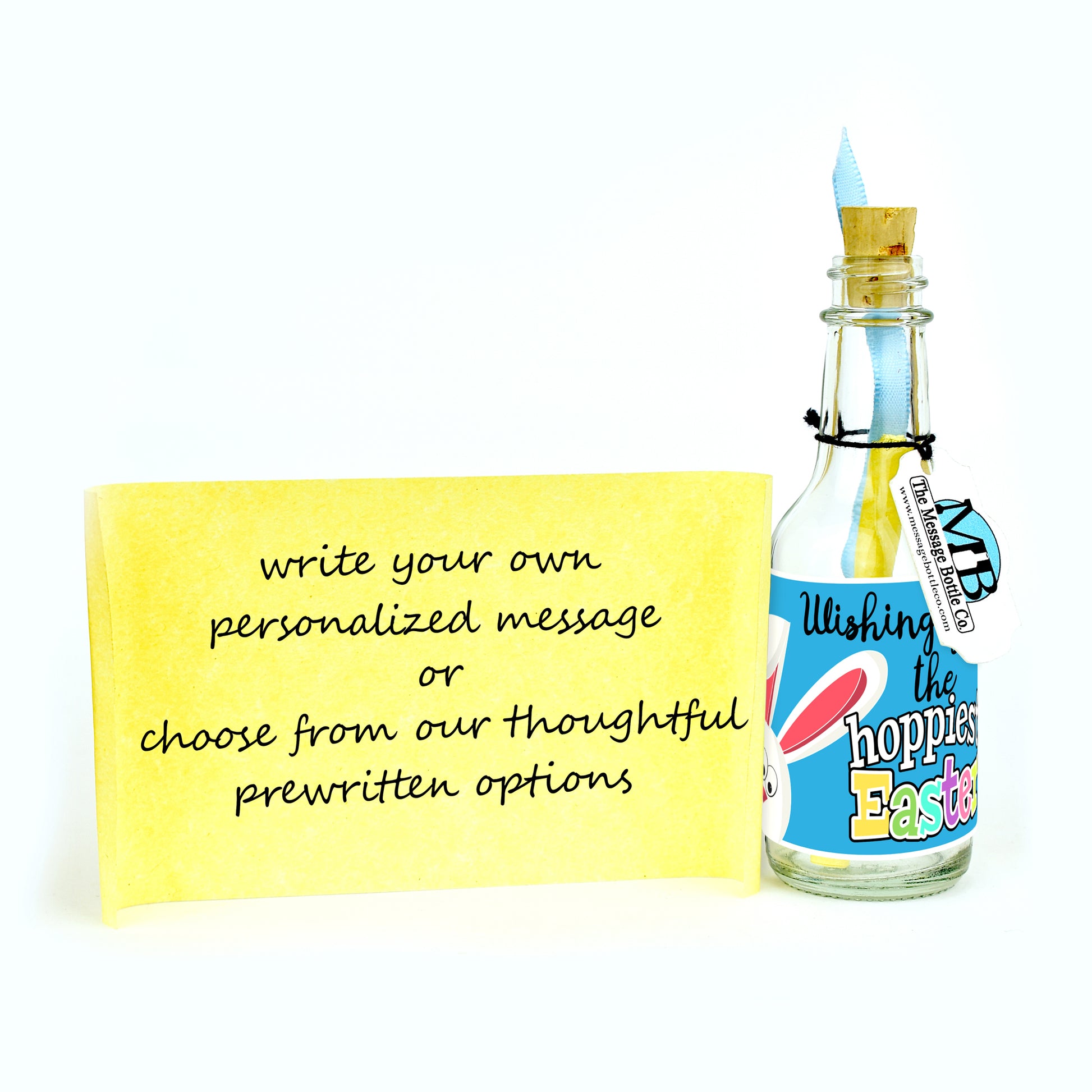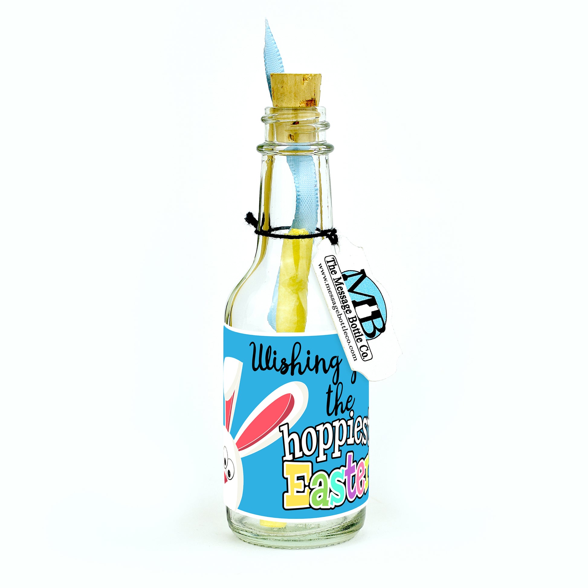 Capture the joyful spirit of Easter with our whimsical Message Bottle featuring the delightful peek of an Easter bunny's head. The playful phrase "Wishing you the hoppiest Easter" brings a smile and warmth, conveying your heartfelt wishes for a joyful and festive holiday.