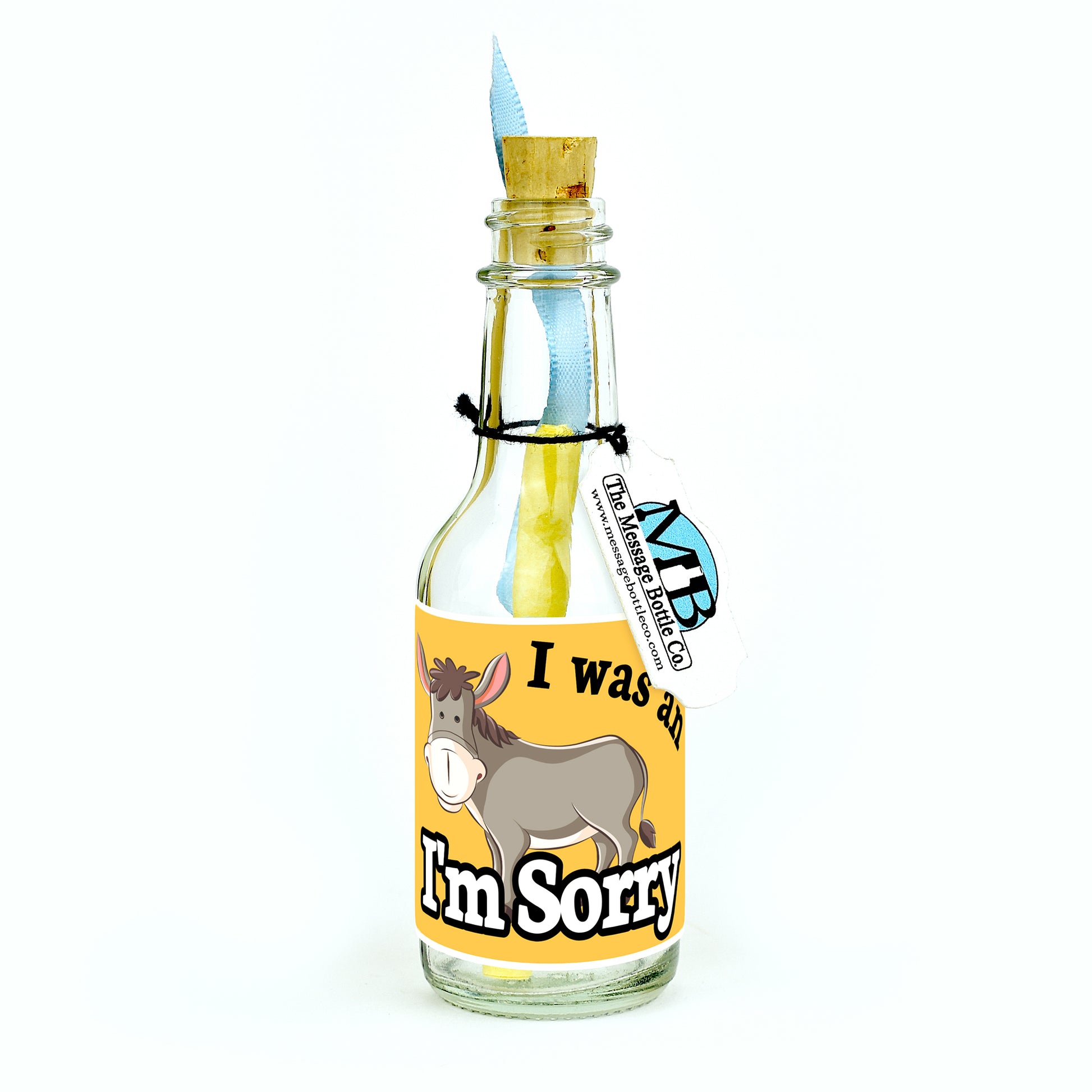 Offer a dose of laughter and sincerity with this playful apology Message Bottle. The charming cartoon donkey and the heartfelt message create a unique and memorable gesture of contrition, sure to bring a smile to the recipient's face.