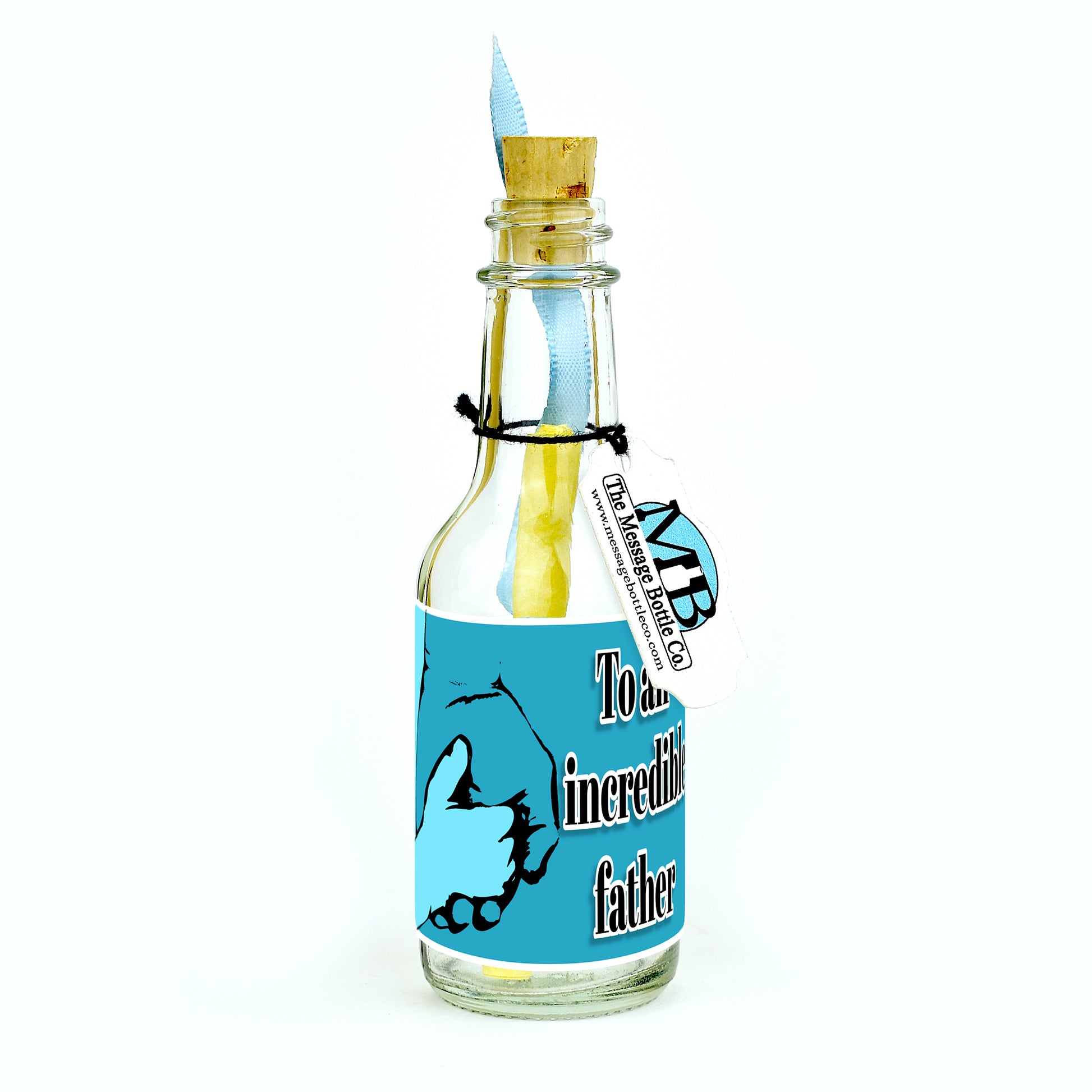 Celebrate the unwavering love and care your father provides on Father's Day with this touching Message Bottle. Featuring the outline of a little kid's hand holding an adult's hand, the label reads "To an incredible father," expressing your deep appreciation for the extraordinary man he is.