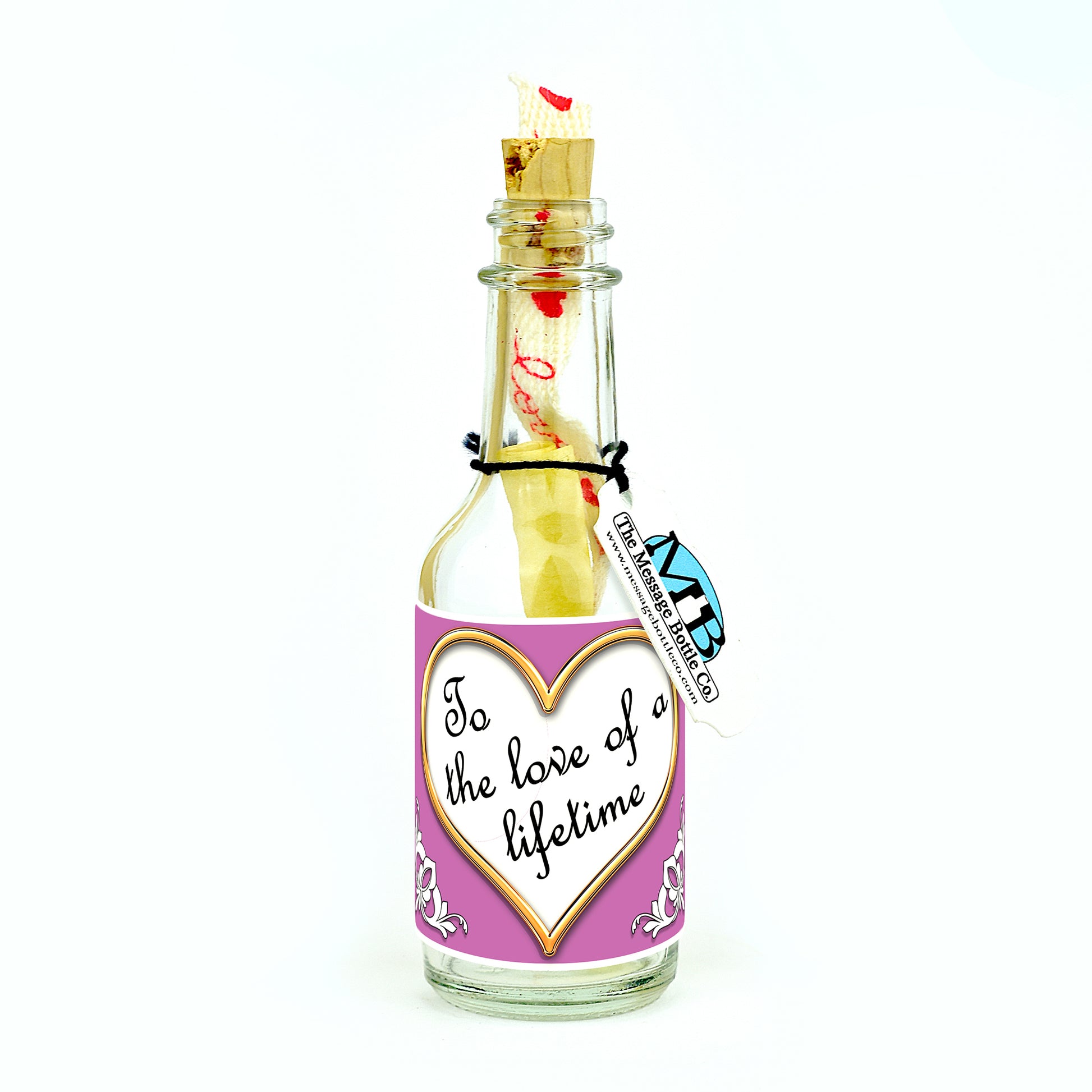 Embrace the romantic allure of our 'Love of a Lifetime' Bottle featuring a gilded heart against a soothing purple backdrop. The heartfelt message, “To the love of a lifetime,” speaks volumes, encapsulating the enduring bond shared between your two hearts.