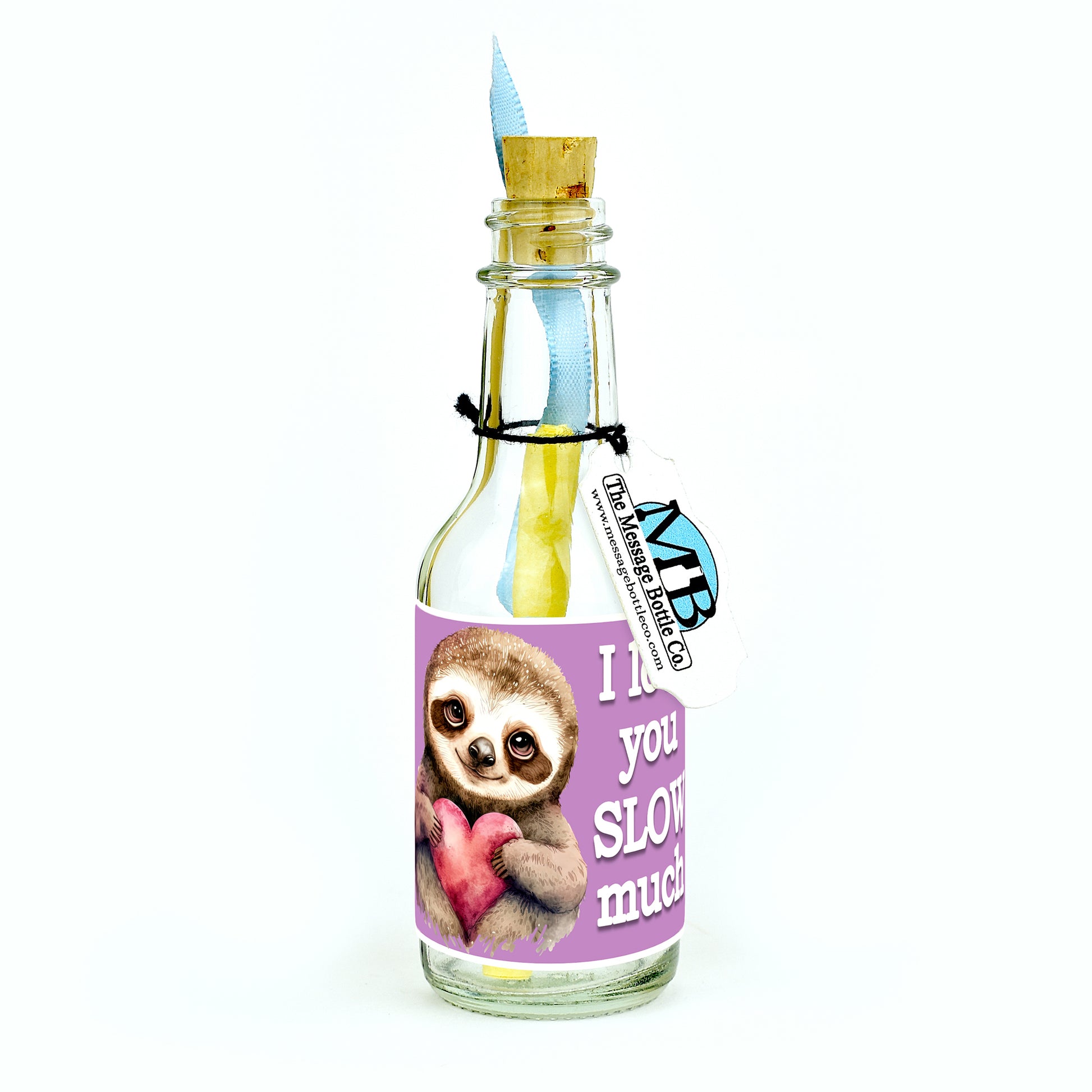 The words "I Love You SLOW Much" express your affection with a hint of whimsy. This Message Bottle becomes a sweet reminder of the love and happiness you share.