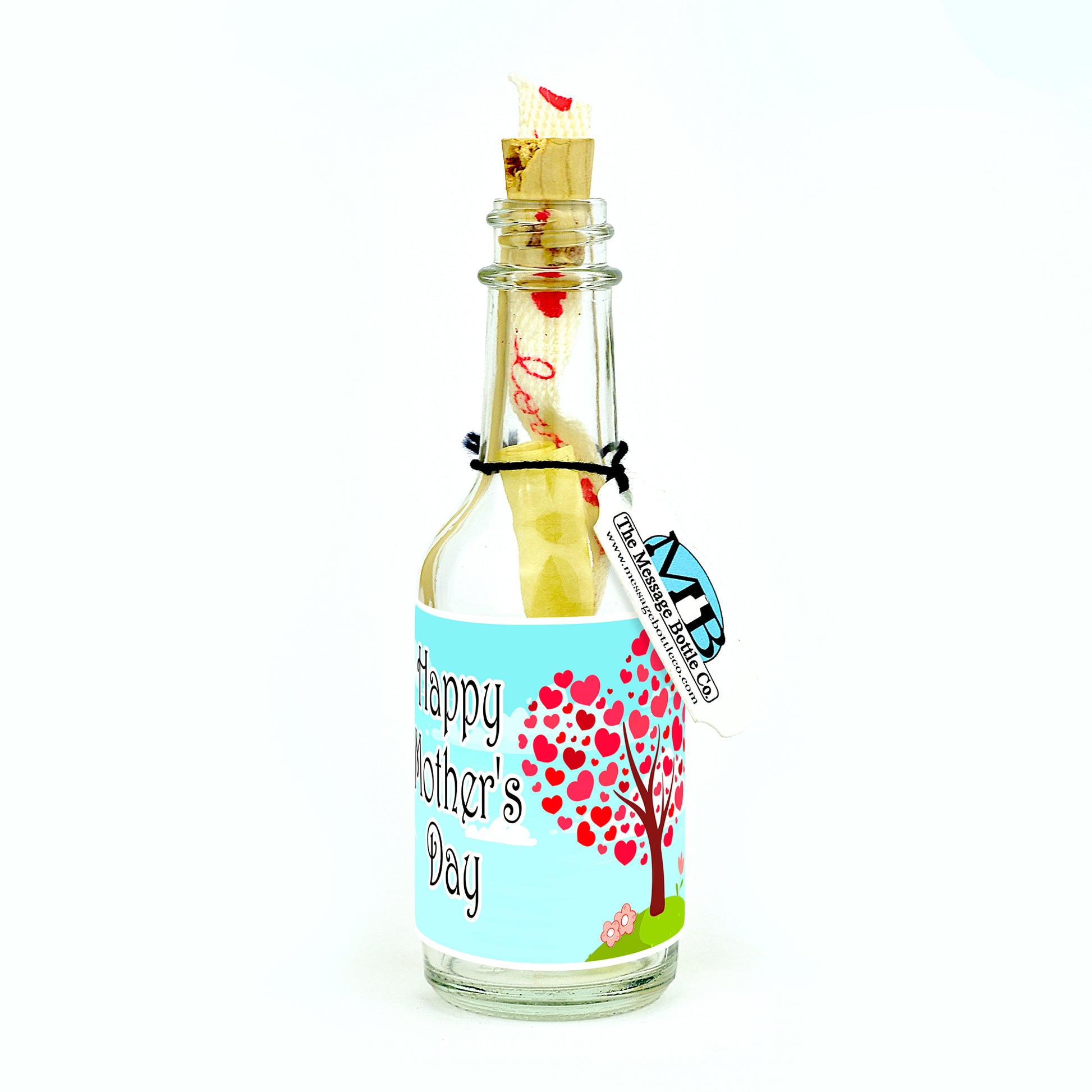 Celebrate the beauty of Mother's Day with our heartfelt Message Bottle adorned with an enchanting tree illustration. The leaves, shaped as hearts, symbolize the love that blossoms between a mother and her child. The label simply reads, "Happy Mother's Day," conveying your affection and appreciation.