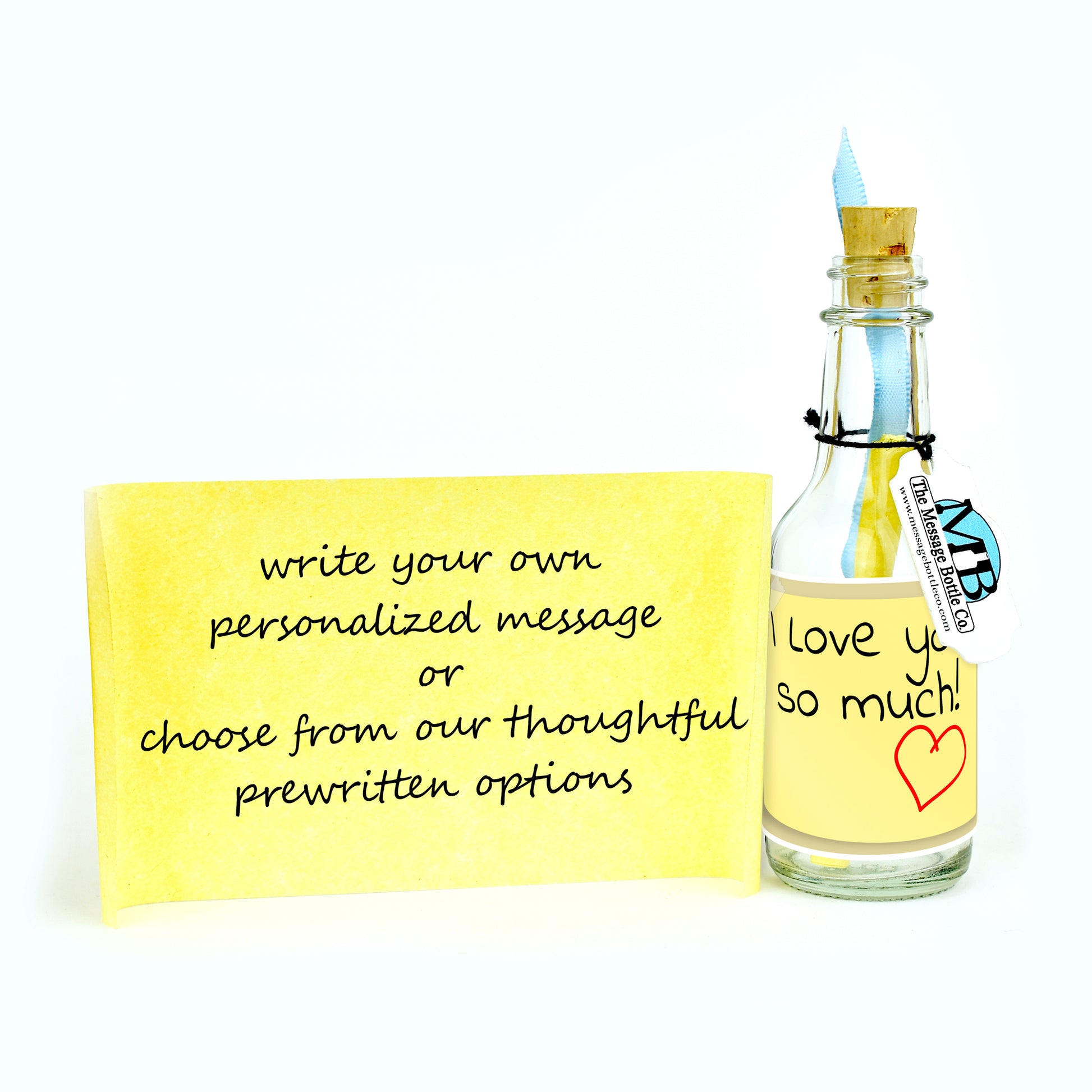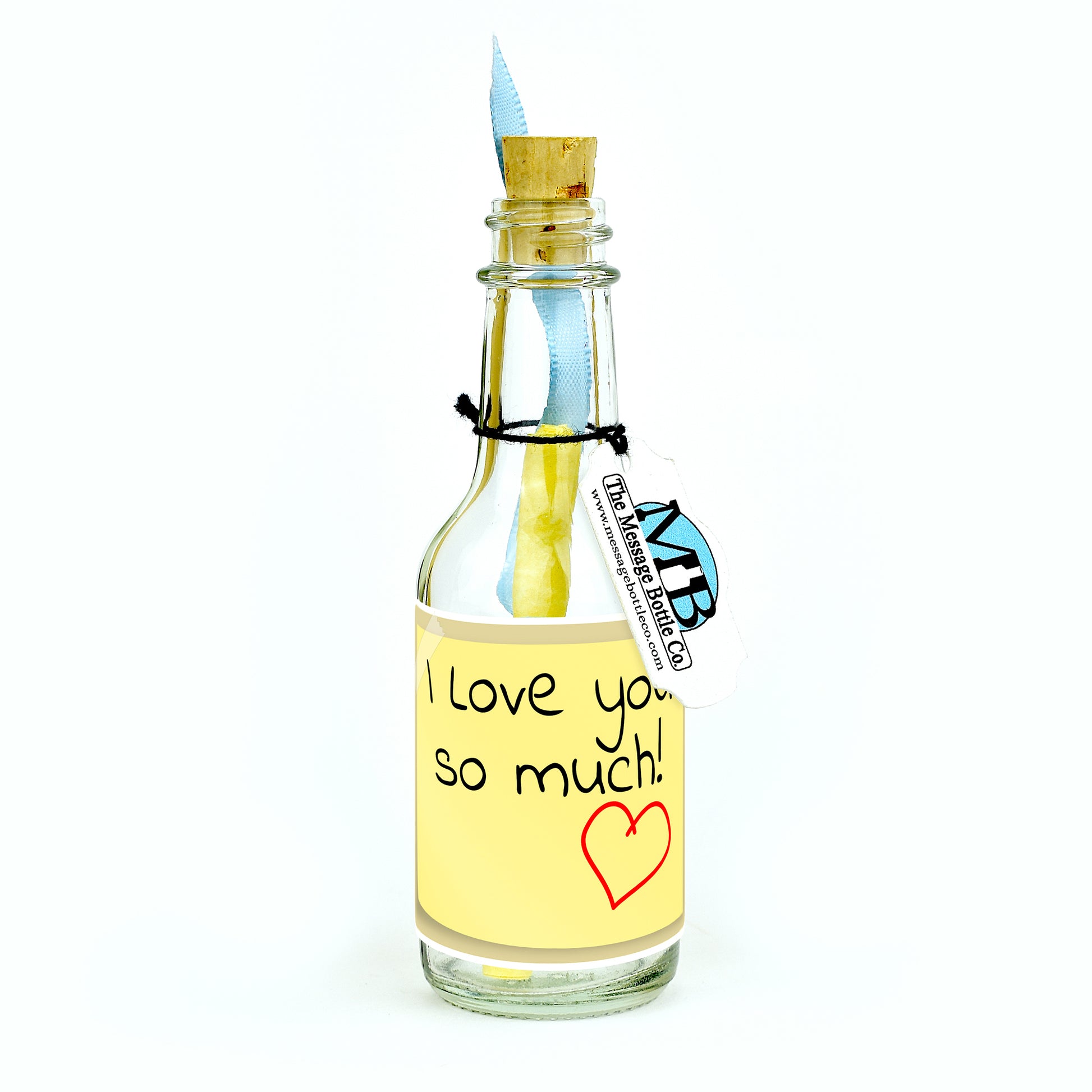 Celebrate the art of heartfelt expression with this touching Message Bottle. Designed to resemble a sticky note, the label features a handwritten note that reads "I love you so much," conveying the depth of your feelings in a simple yet powerful way.