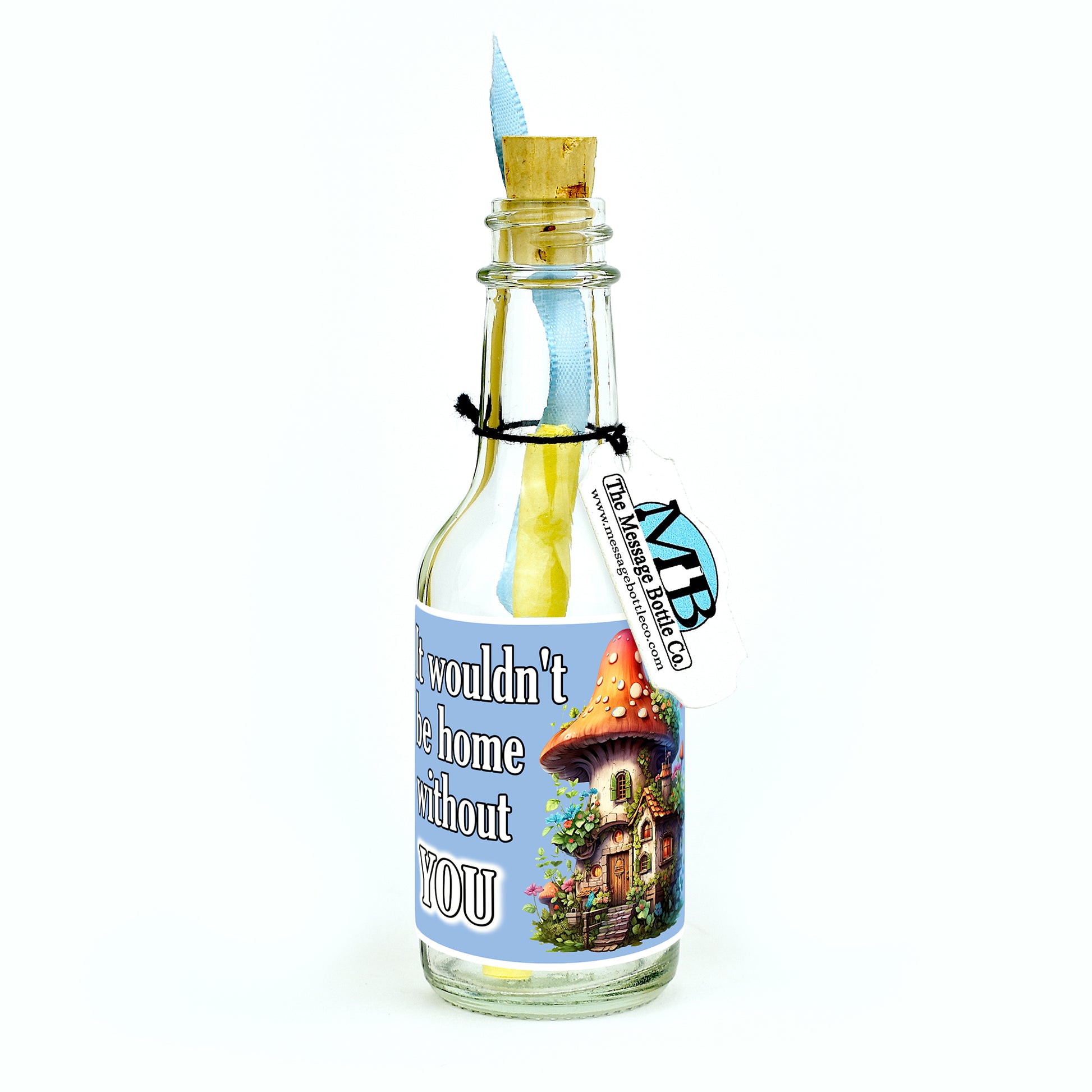 Celebrate the warmth of your step family on Step Family Day with this endearing Message Bottle. Featuring an illustration of a cute fictional house nestled in a mushroom, this label radiates charm and togetherness.