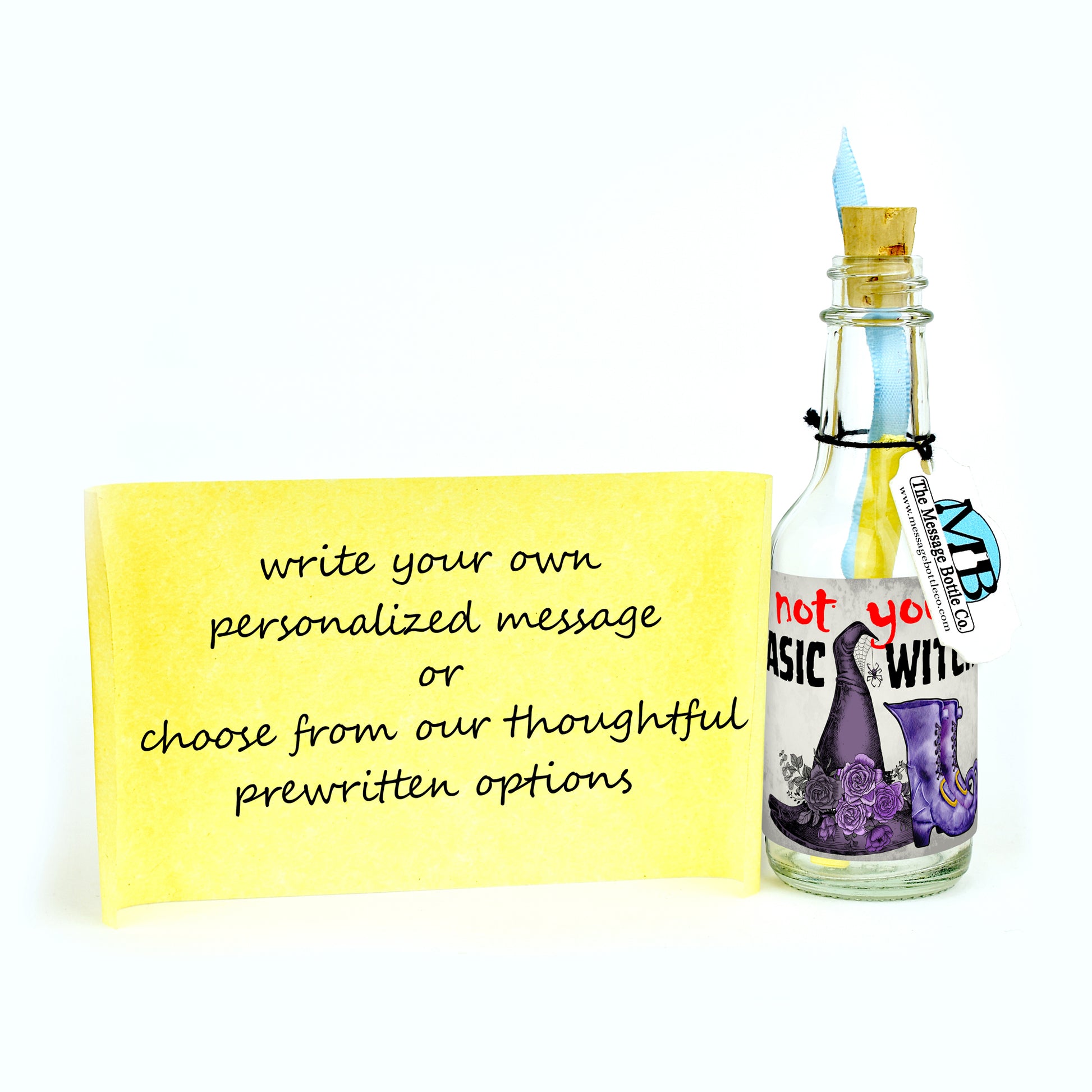 Order the "Not Your Basic Witch" Message Bottle today to cast a spell of fun and fabulousness on your Halloween greetings.