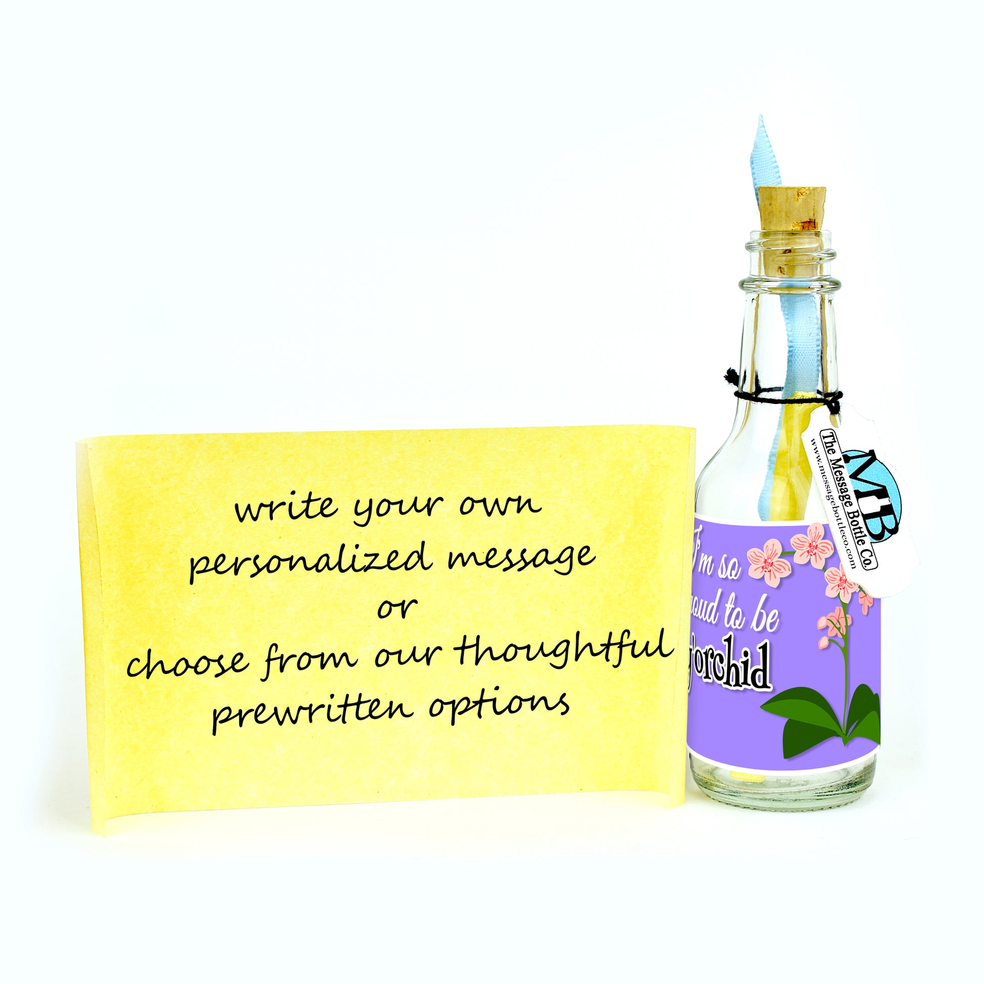 On Parent's Day, elevate your emotions with our exquisite Message Bottle. Featuring the illustration of an orchid, it proudly declares, "I'm So Proud to Be Y'Orchid." A delicate yet impactful way to convey your deep admiration.