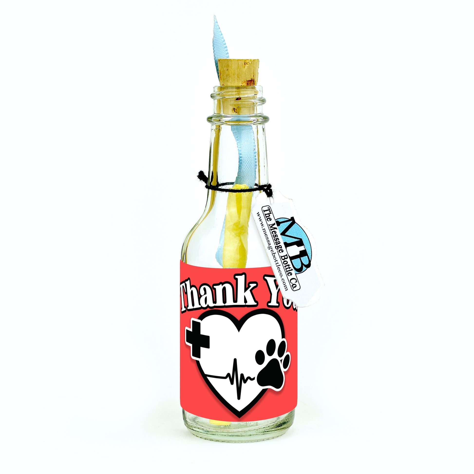 A bold celebration of compassion and gratitude, the “Pulse of Gratitude” Message Bottle features a striking white heart on a vivid red background, complete with a black heartbeat line, a paw, and a medical cross. The vibrant design conveys care, dedication, and heartfelt appreciation, perfectly capturing the spirit of veterinary care.