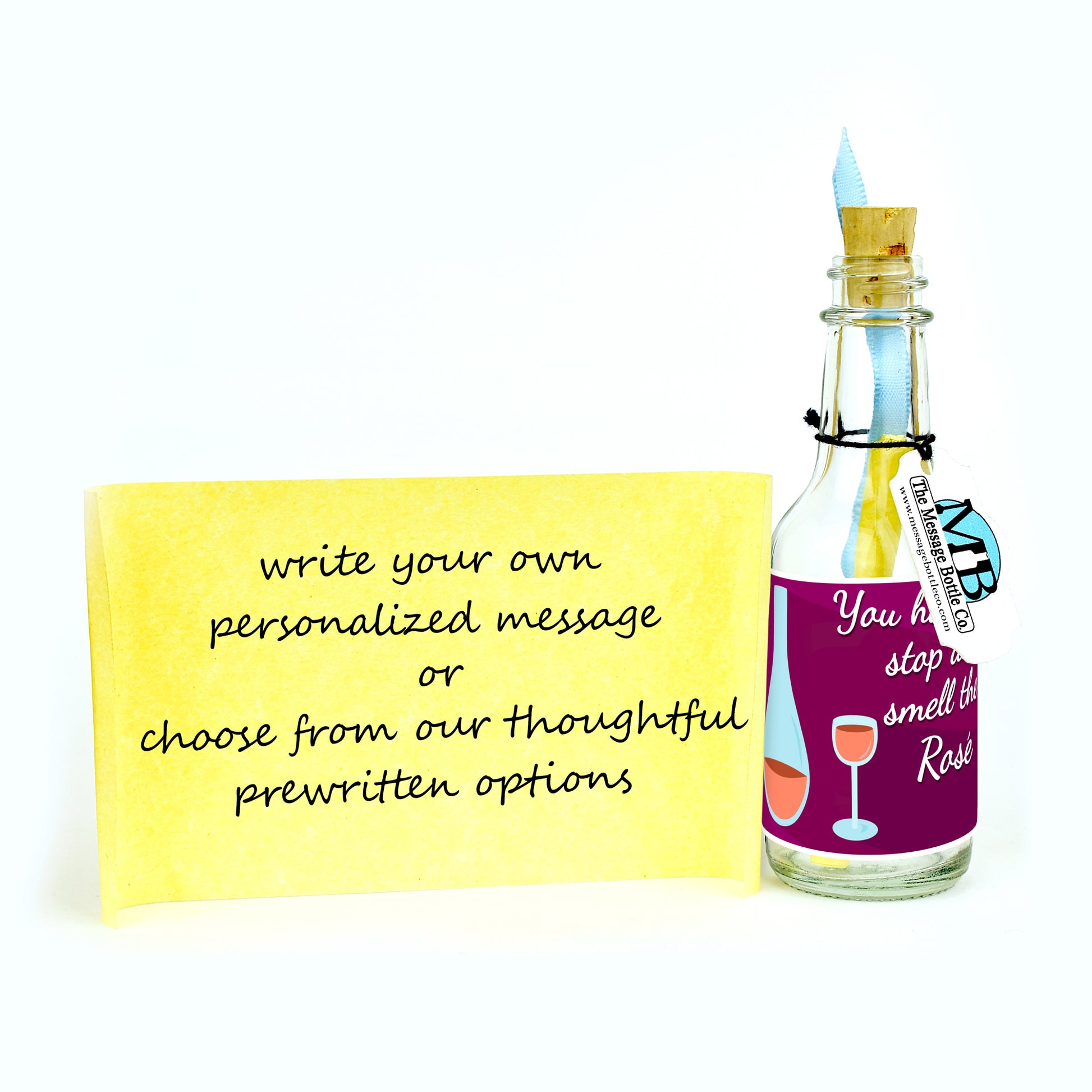 Celebrate the one who makes every pour better with this elegant and insightful Message Bottle. Featuring a wine glass and decanter, the label reads “You Have to Stop and Smell the Rosé,” capturing the joy of slowing down and savoring life’s simple moments together.