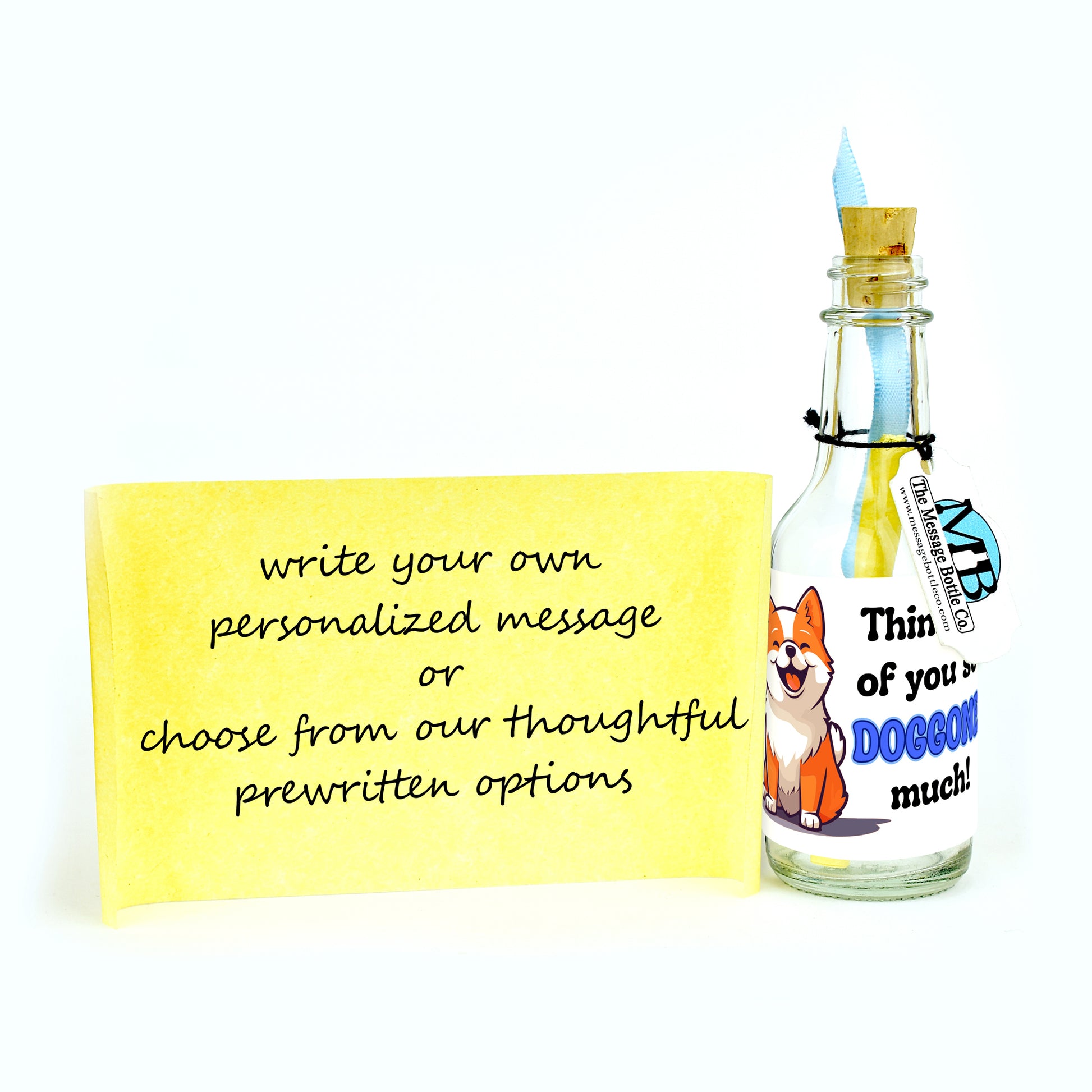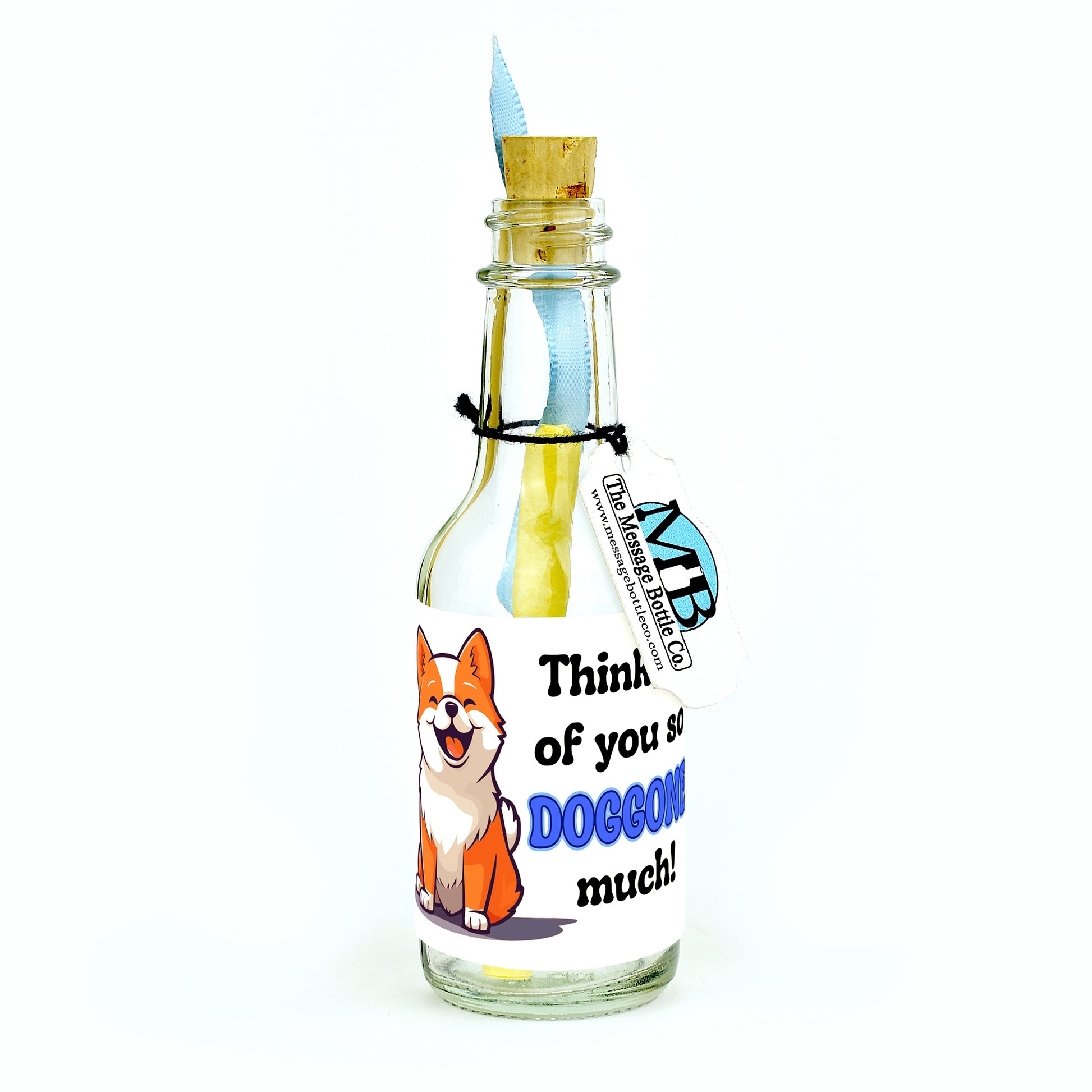 With pointed little ears, a wagging tail, and a big ol’ grin, "So Doggone Much" is here to deliver the kind of loyalty only a cartoon pup can provide. This charming Message Bottle features a sweet, smiling dog alongside the playful phrase: “Thinkin’ of you so DOGGONE much!” - a greeting that practically wags with affection. From its cheerful design to its roll-up message inside, everything about this bottle says you’ve got a friend fur life.