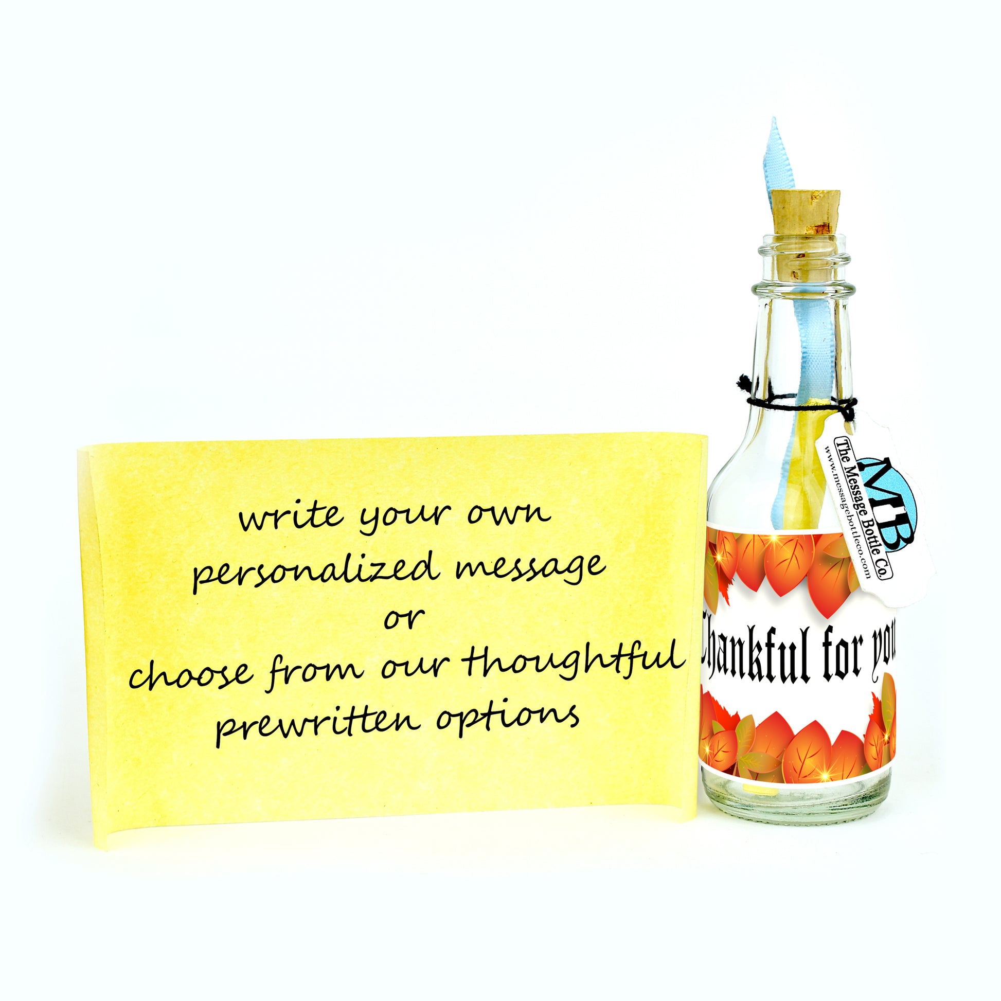 The arrangement of vibrant fall leaves symbolizes the changing seasons and the beauty that comes with embracing change. This Message Bottle serves as a meaningful keepsake, a tangible representation of the gratitude you hold for your loved ones.