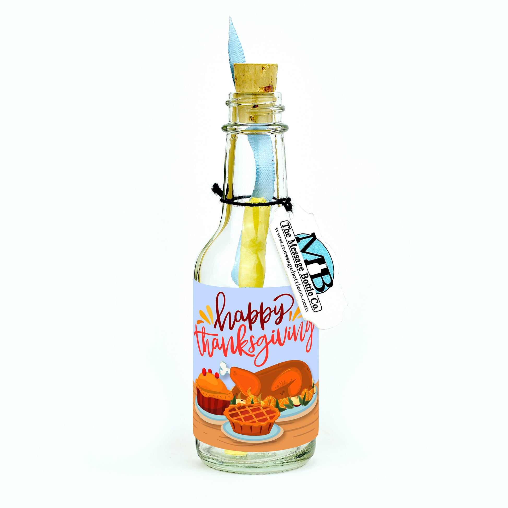 Charmingly presented with a mouthwatering turkey on a gleaming platter, alongside a tempting selection of pies, this Message Bottle embodies the spirit of Thanksgiving celebrations. With a heartfelt “Happy Thanksgiving” greeting, it perfectly captures the warmth and joy of gathering around the table with loved ones.