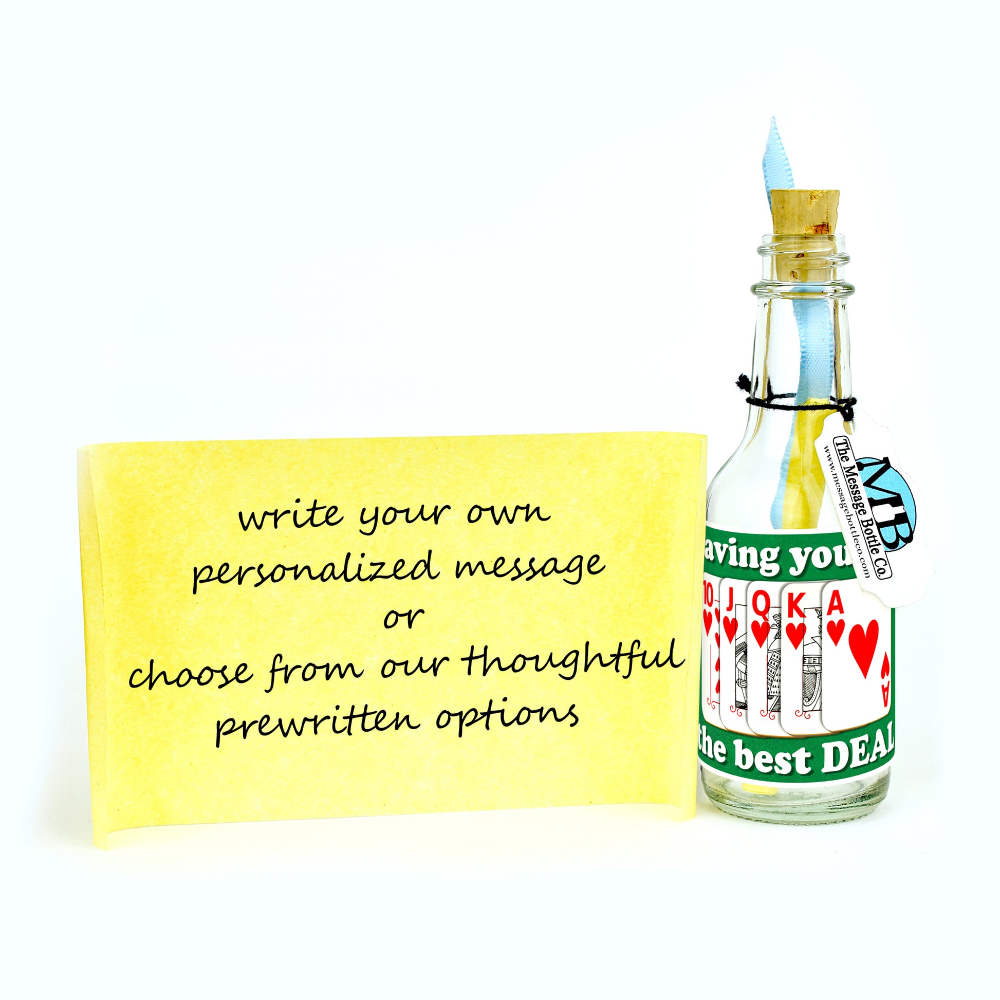 Step into the spotlight of Son's & Daughter's Day with our heartwarming Message Bottle. A royal flush of hearts adorns the label, eloquently declaring, "Having You Was the Best Deal." A profound testament to the joy, love, and enrichment they've brought into your life.