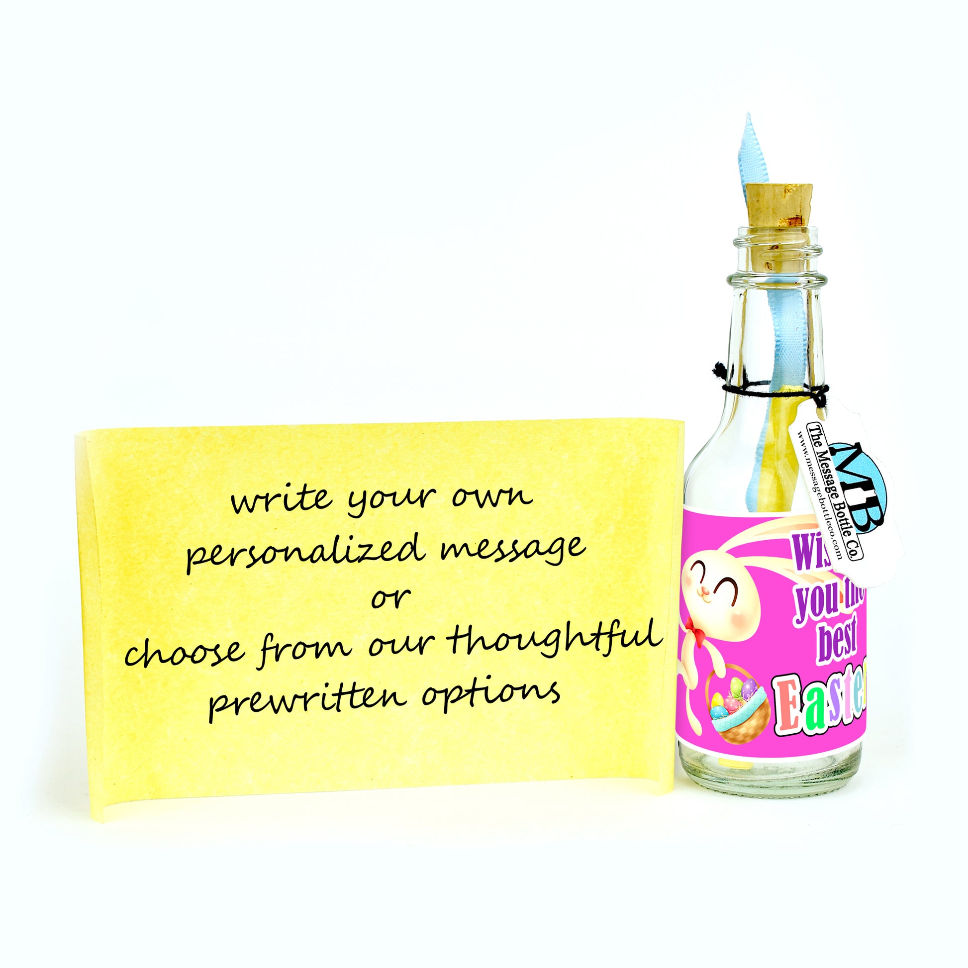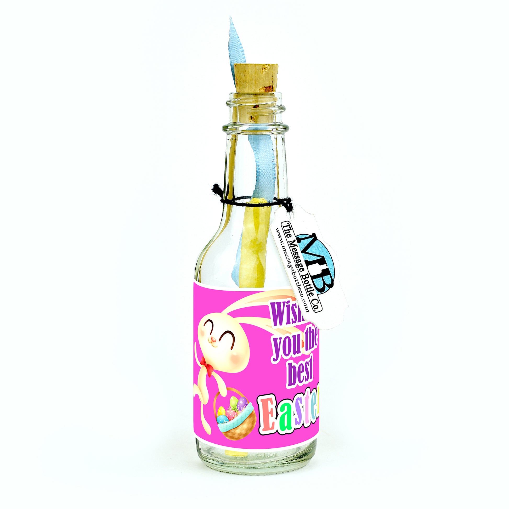Celebrate Easter with our delightful Message Bottle featuring a cartoon bunny joyfully skipping with an Easter basket in hand, adorned with the heartwarming message "Wishing you the best Easter". This charming label sets the perfect tone for spreading Easter joy and well-wishes. The whimsical bunny illustration adds a touch of cheer, making this Message Bottle a delightful way to send Easter greetings.