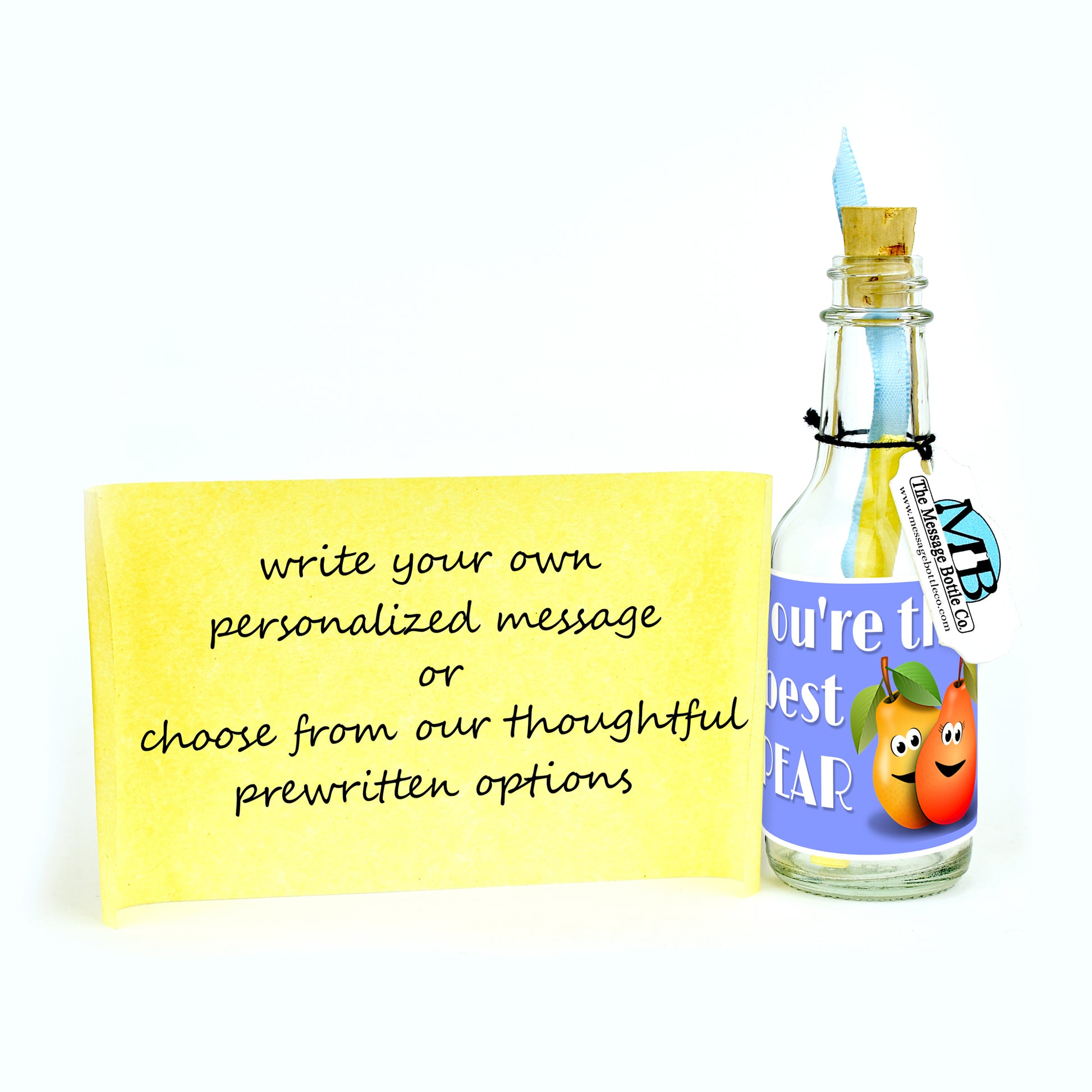 Celebrate the special bond of Aunts and Uncles on their dedicated day with this heartwarming Message Bottle. Featuring a pair of smiling cartoon pears, the label affectionately reads "You're the best pear," expressing the unique and cherished relationship shared.