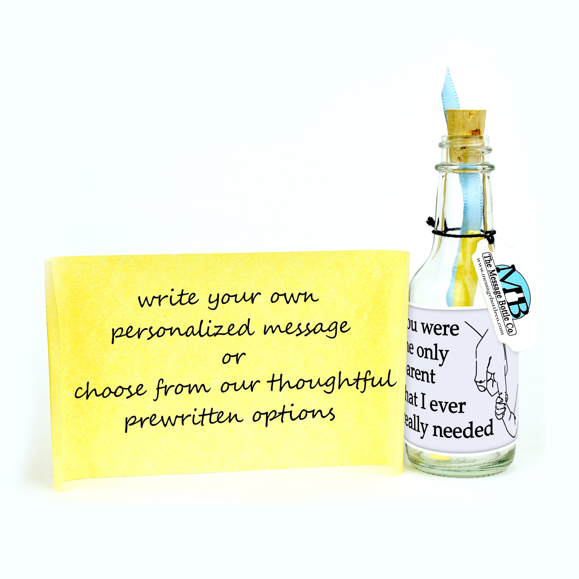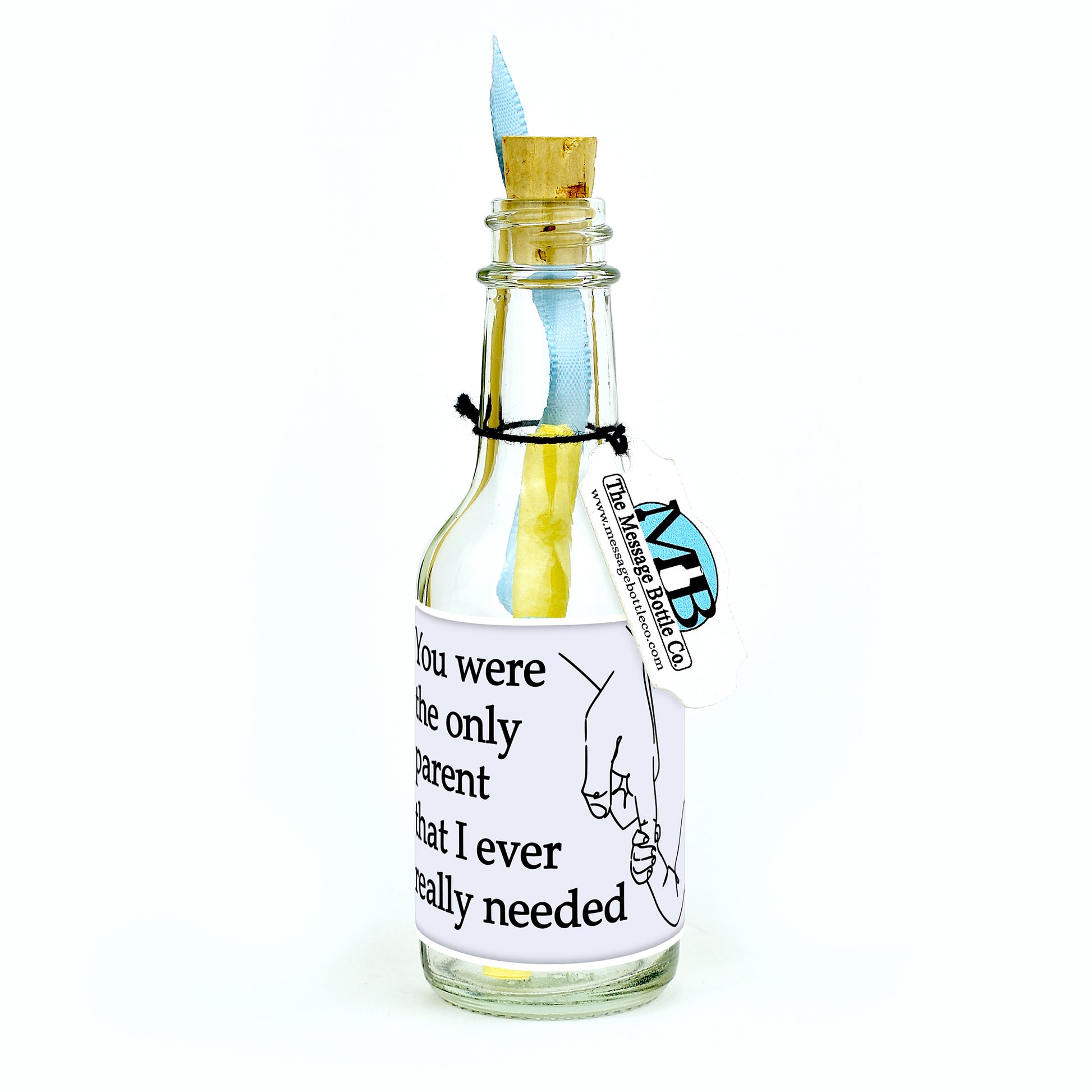 Celebrate the remarkable role of a single parent on Single Parent's Day with this heartfelt Message Bottle. Featuring the outline of a child's hand holding an adult's hand, the label reads "You were the only parent that I ever really needed," expressing gratitude for their unwavering love and support.