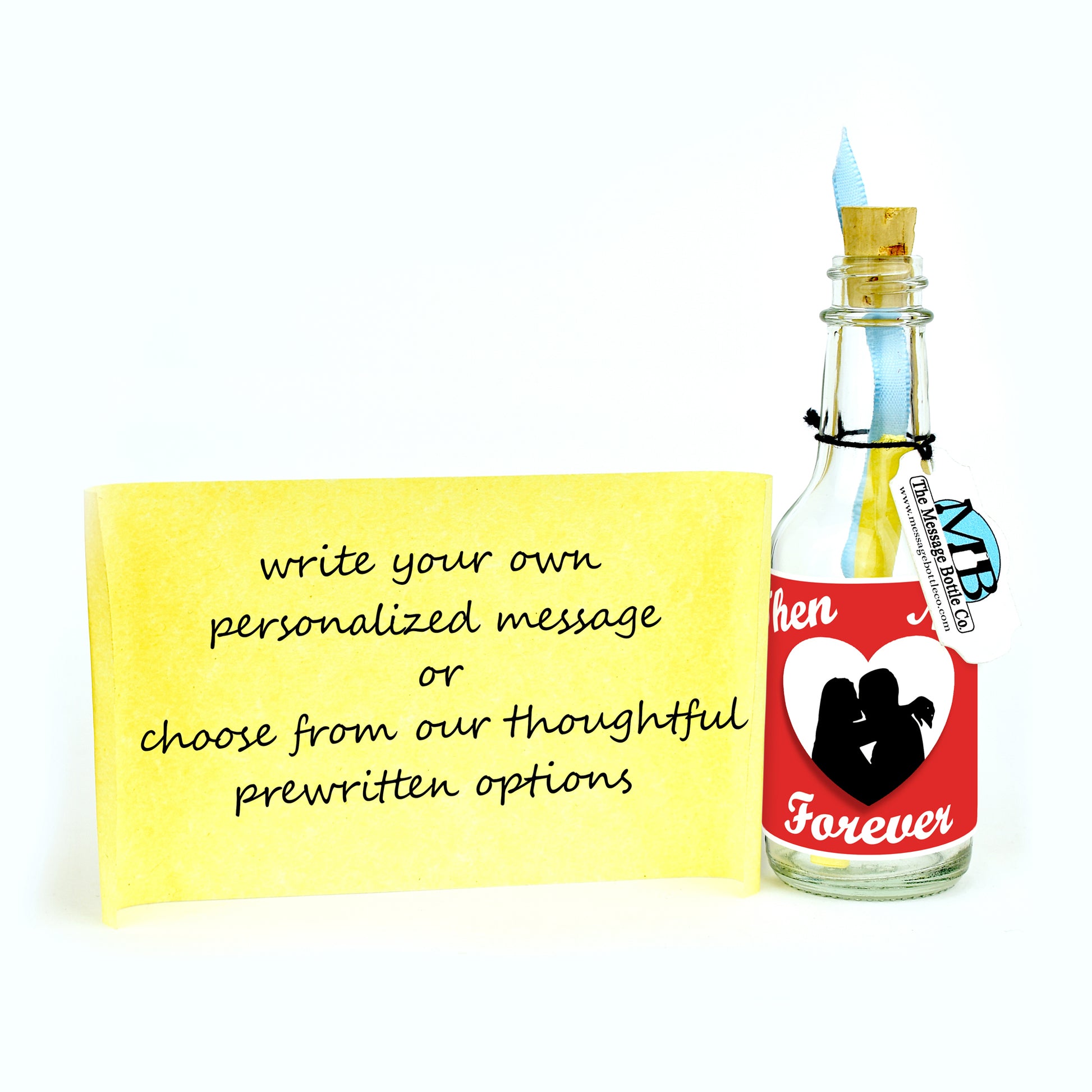 The words "Then Now Forever" express the timeless nature of your affection. This Message Bottle becomes a tangible reminder of the deep bond that has grown and continues to flourish.