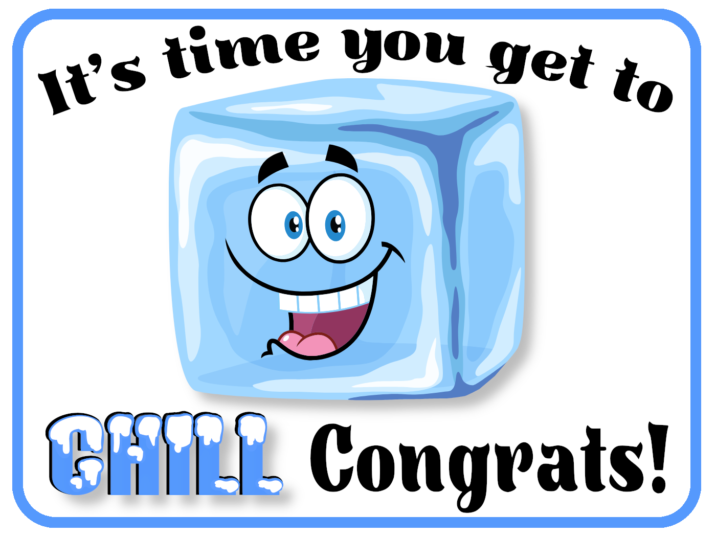 Celebrate retirement in a refreshingly cool way with our "Time to Chill" Message Bottle. Featuring a gleeful cartoon ice cube, this design is perfect for someone about to enjoy a well-deserved break. The playful message, "It's time you get to chill, Congrats," is enhanced by the word 'Chill' in a frosty, snow-covered font, adding a touch of whimsical fun.