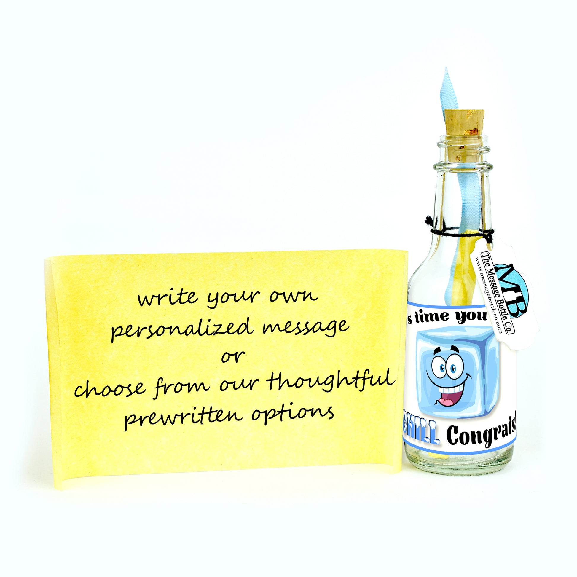Order now to add a splash of icy celebration and joy to their special moment with our "Time to Chill" Message Bottle.