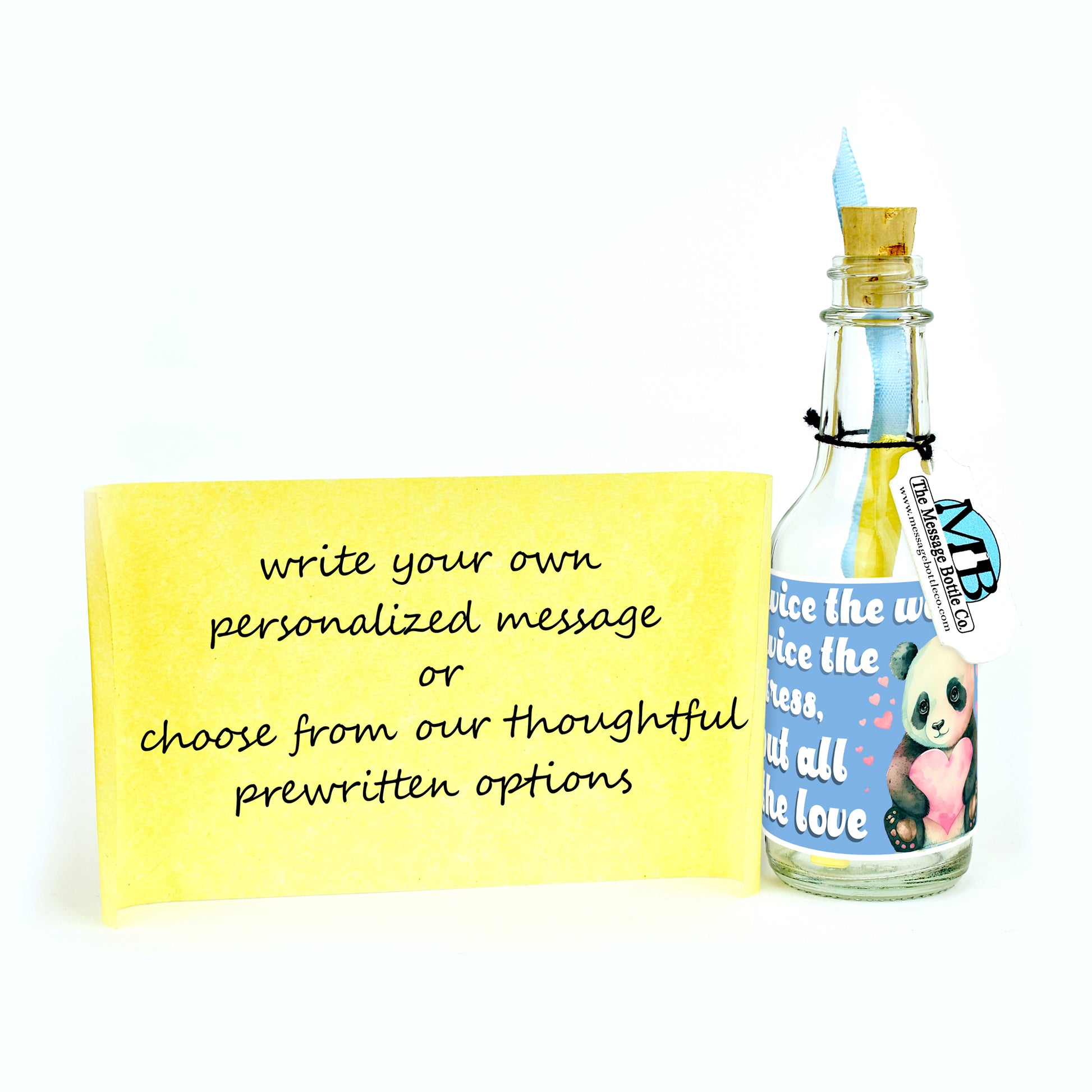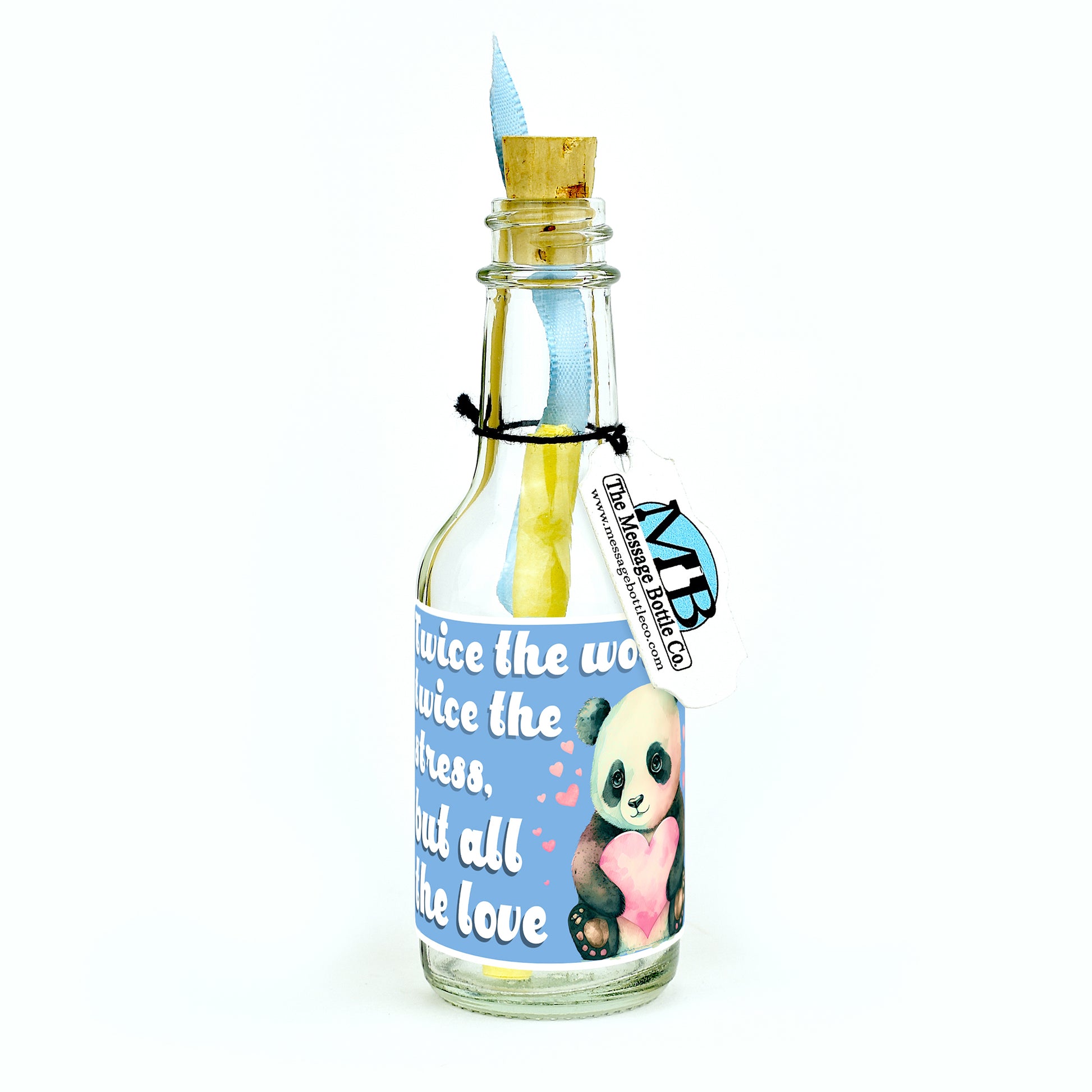 Celebrate the remarkable dedication of single parents on Single Parent's Day with this heartfelt Message Bottle. Featuring an illustration of a panda bear holding a heart, the label conveys the sentiment "Double the Effort, Double the Love," capturing the strength and love that single parents provide.