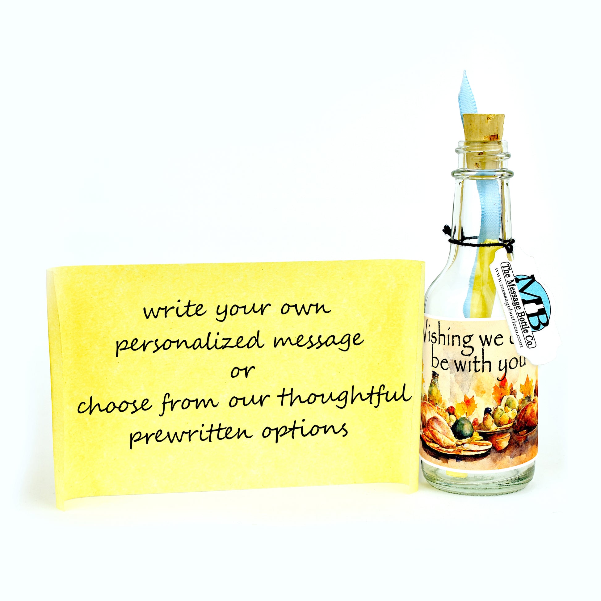 The detailed watercolor depiction of the feast adds a touch of artistry to your Thanksgiving message. This Message Bottle becomes a heartfelt gesture, reminding recipients of the love and connection that transcends physical distance.