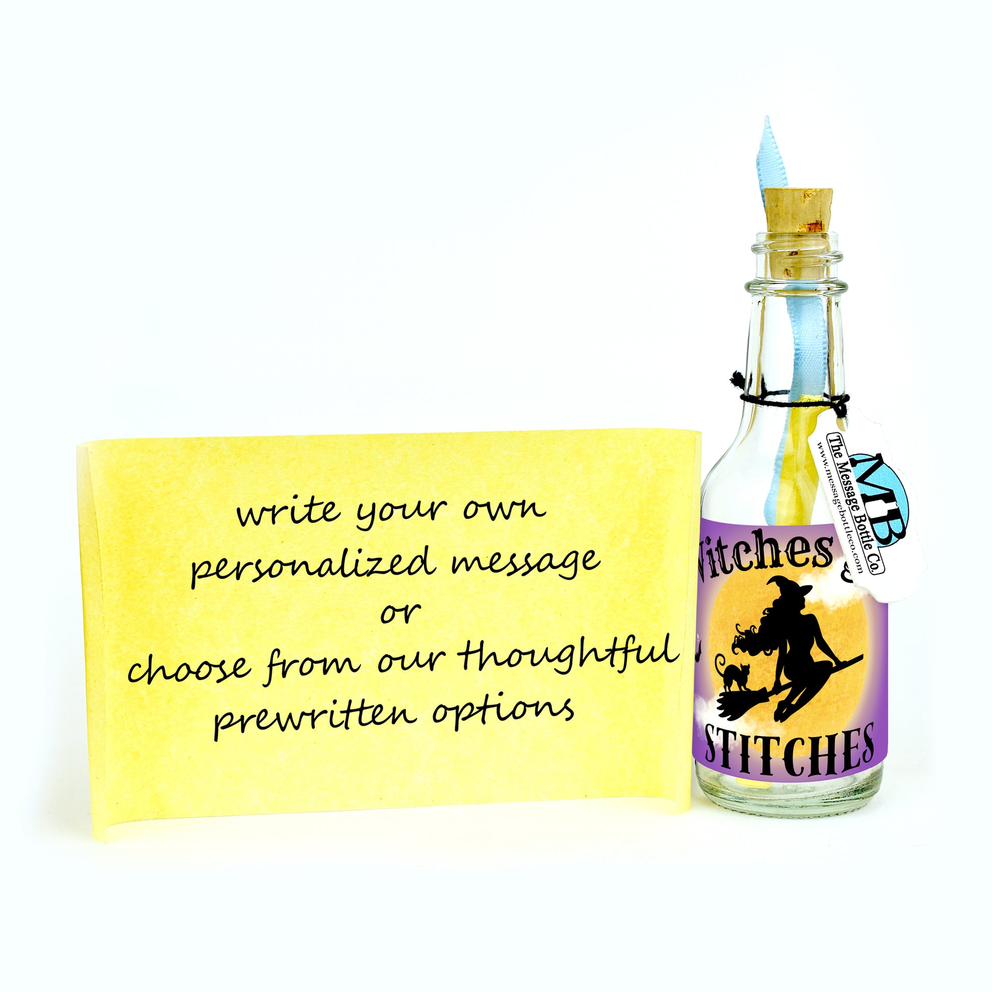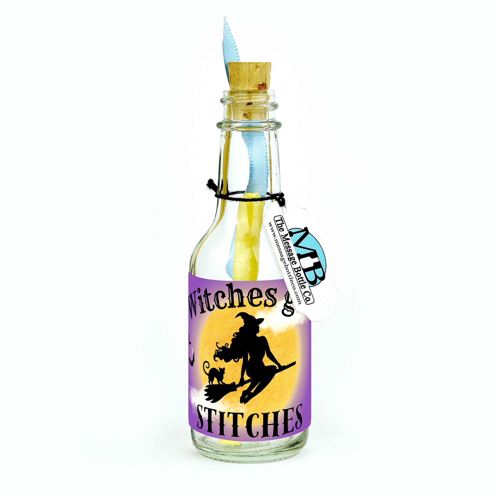 Cast your spell of laughter this Halloween with the Witches Give Stitches Message Bottle.