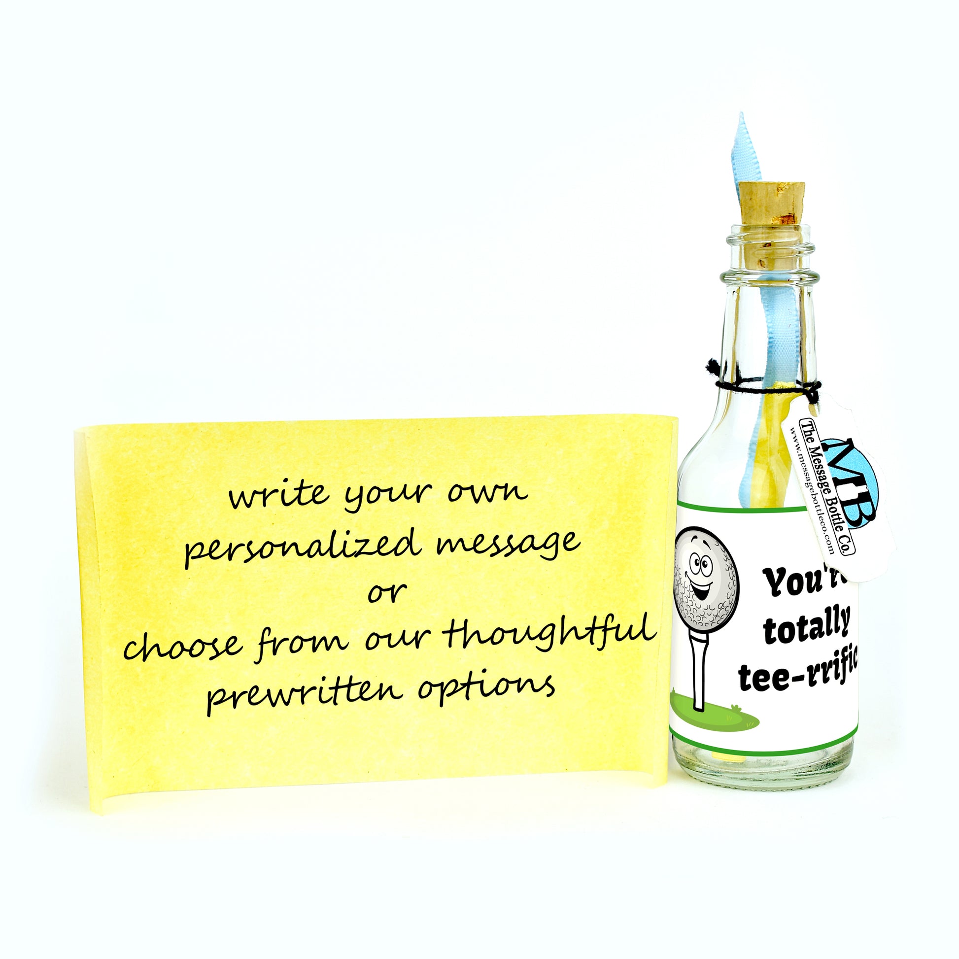 Sometimes all it takes is a small reminder to make someone’s day. The “You’re Tee-rrific” Message Bottle features a cheeky smiling golf ball perched on a tee, delivering a fun, feel-good message made just for the golf lover in your life. It’s a simple way to say thinking of you and send a little encouragement when they least expect it.